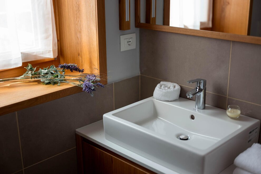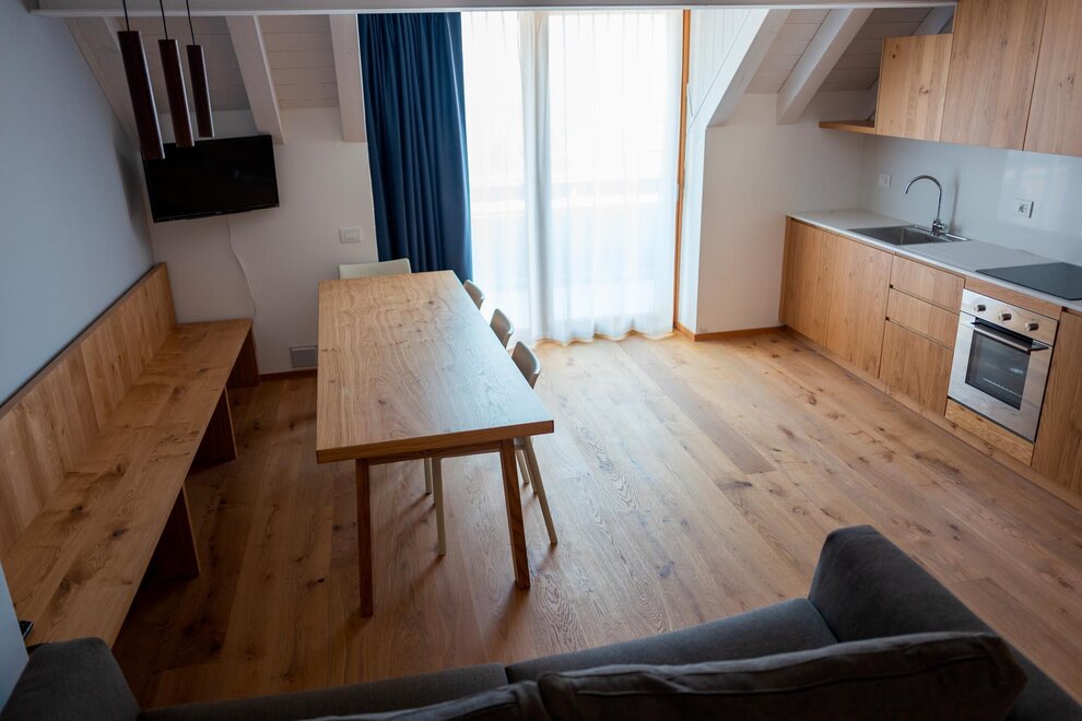 Diese Apartments können eine Wohnfläche von bis zu 48 m² haben und wurden speziell für Gäste entworfen, die auf der Suche nach Intimität sind. Zwei Worte, um sie zu beschreiben: hell und detailorientiert. Sie verfügen über ein Schlafzimmer mit Doppelbett und großem Kleiderschrank, ein Bad mit Duschwanne und Waschmaschine sowie einen Wohnbereich mit Küche, integrierter Spülmaschine, Sat-TV, Telefon und Schlafcouch. In unseren Zweizimmerwohnungen finden das Licht und die zimbrischen Landschaften immer ihren Weg durch ein Fenster, um die Momente der darin wohnenden Gäste unvergesslich zu machen.
