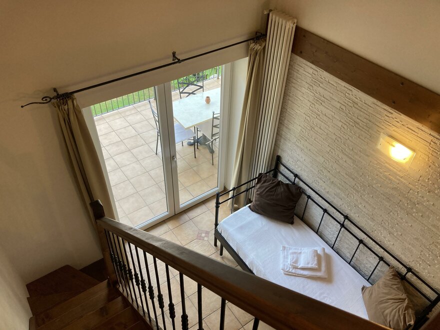 Die vornehme, neue "Residenz zu den 2 Türmen" (Residenza le 2 Torri) liegt wie auch die "Residenz Segattini" in der sonnenbeschienenen Ebene von Riva del Garda, zirka 2,5 km vom See entfernt, in mitten eines agrotouristischen Zentrums, wo Sie das Grün, die Sonne, die Ruhe, und die Entspannung genießen können. Der Stil der Residenz ist unverwechselbar und unterscheidet sich sehr von dem anderer, moderner Residenzen, die in den letzten Jahren Verbreitung gefunden haben. Die 2 herrschaftlichen Türme versetzen Sie in vergangene Zeiten und lassen Sie in die Wärme der einfachen, aber feinen Dinge eintauchen, wie zum Beispiel die Fußböden aus Terrakottafliesen, die Betten aus Schmiedeeisen, die Terrakotta-Gefäße - kurzum, den Geschmack der altertümlichen, unvergänglichen Tradition. In der Nähe finden Sie alle Annehmlichkeiten wie: Supermarkt, Bank, Post und Restaurants, in denen Sie als unser Gast spezielle Konditionen bekommen