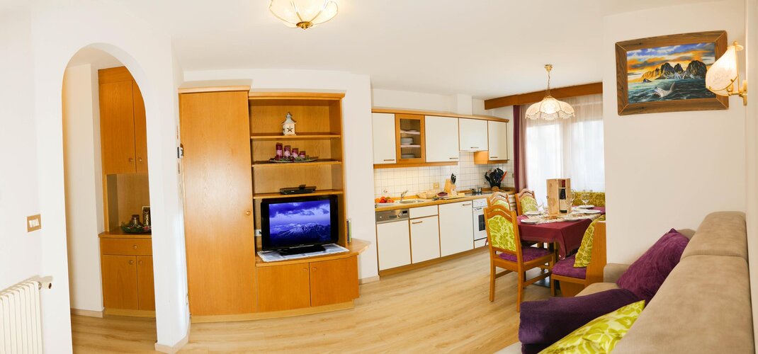 Von der ruhig gelegenen Wohnanlage Villa Artic sind es nur wenige Schritte zum Zentrum von Campitello und ca. 800 m zur Seilbahn Col Rodella, die der Ausgangspunkt der berühmten "Sella Ronda"-Tour ist sowie von fantastischen Sommerwanderungen. Die 2 bis 6 Betten-Appartments sind mit allem Komfort ausgestattet: Spülmaschine, Backofen, Küche mit Keramikplatte, TV-Sat mit über 400 Kanäle, Safe, Telefon, Internetanschluss, Wi-Fi, Waschküche, Skiabstellraum mit Skischuhwärmer und Garage. Der ideale Ort um einen Urlaub ganz in Ruhe und Erholung zu genießen.