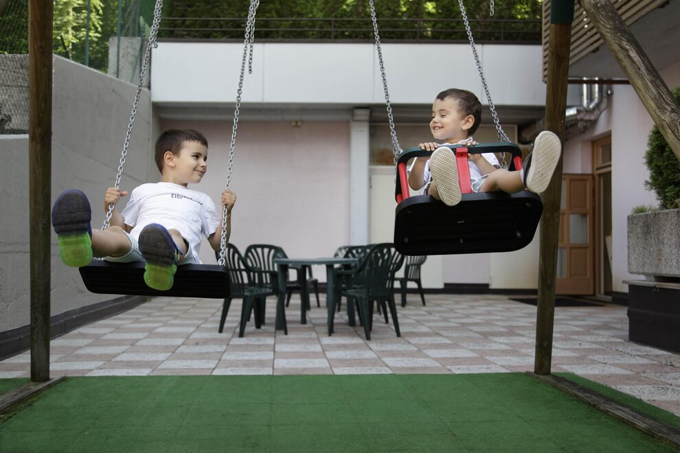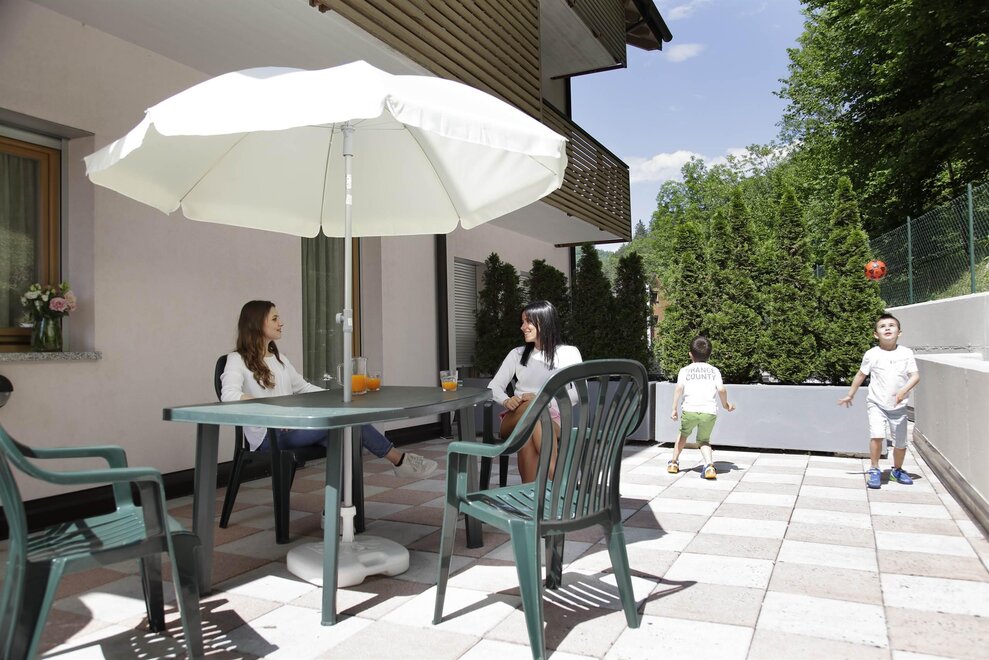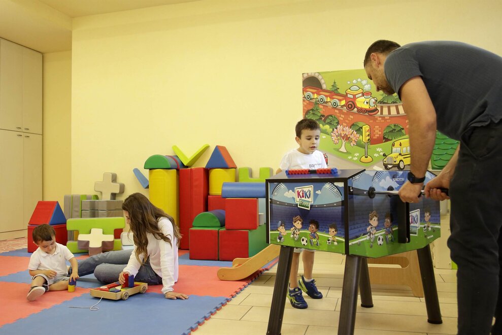 Wir legen seit jeher besonderes Augenmerk auf Familien mit Kindern. So stellen wir den Kleinen in den Apartments das Comano Junior Kit zur Verfügung, bestehend aus Kinderbett, Hochstuhl, Badewanne und Wickeltisch, und haben ein Zimmer in der Residenz genutzt als Spielzimmer mit Innen- und Außenräumen.