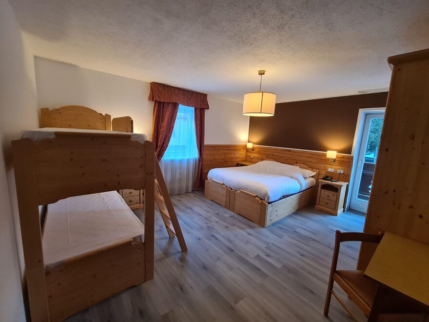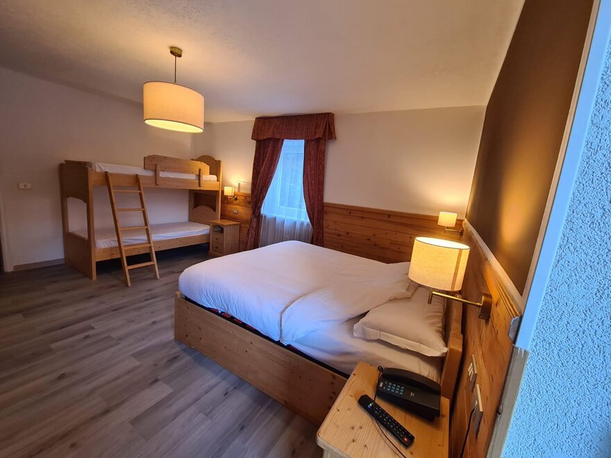 Unser Superior-Vierbettzimmer mit einer Größe von 24-26 Quadratmetern ist ideal für eine Familie mit 2 Kindern. Für diese Zimmerkategorie können Sie zusätzlich zum Etagenbett zwei getrennte Betten anfordern.