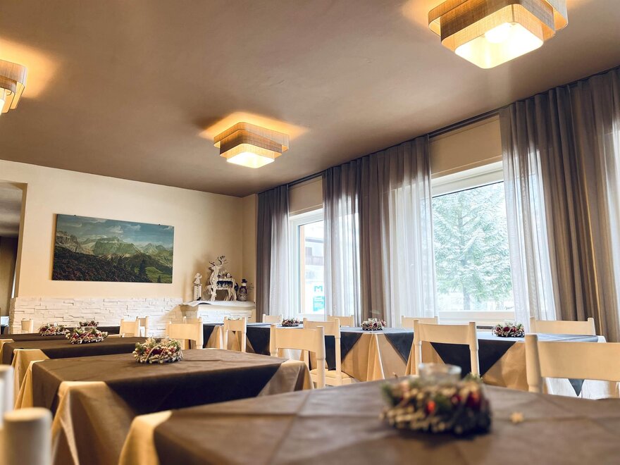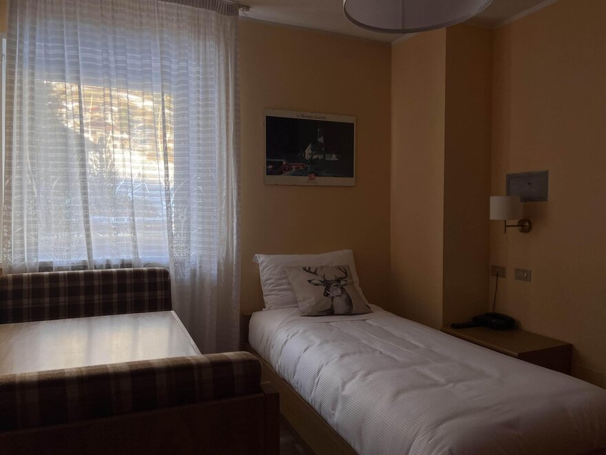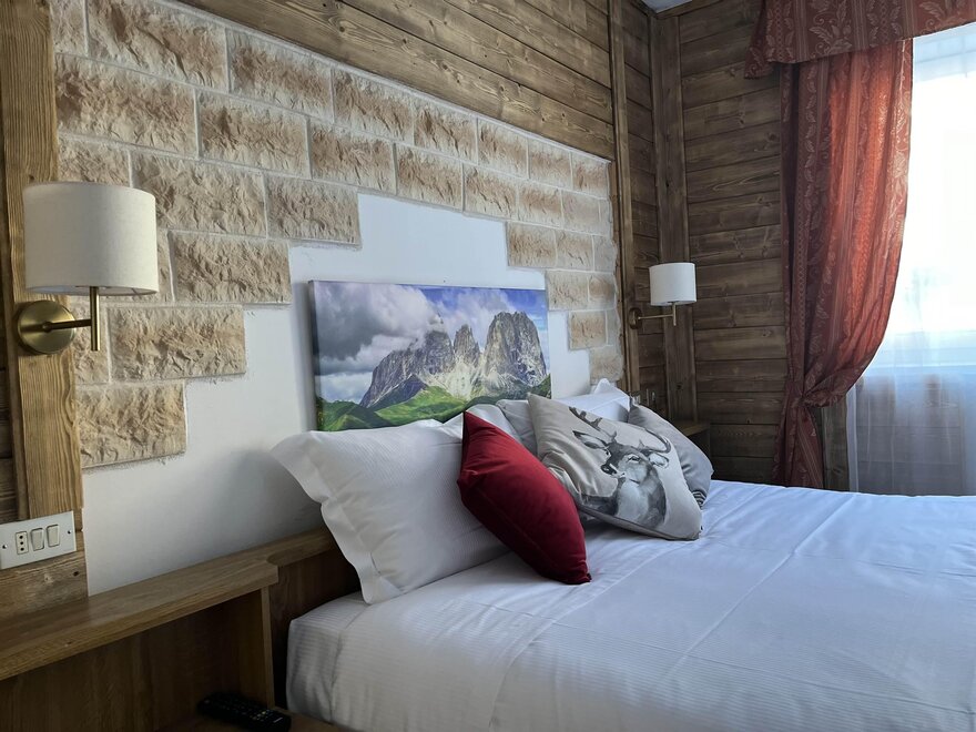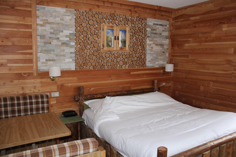 Die mit dem Aufzug erreichbaren Zimmer verfügen über Teppich- oder Parkettböden und sind mit allen notwendigen Dienstleistungen ausgestattet, darunter: privates Badezimmer mit Duschkabine, Pflegeset, Haartrockner, TV, Safe und kostenloser WI-FI-Anschluss, im Bergstil eingerichtet.