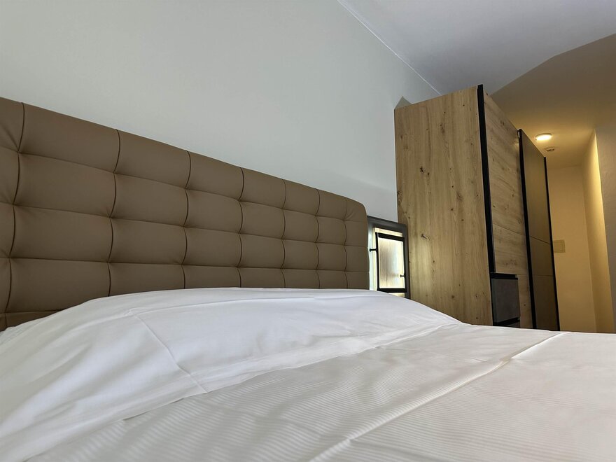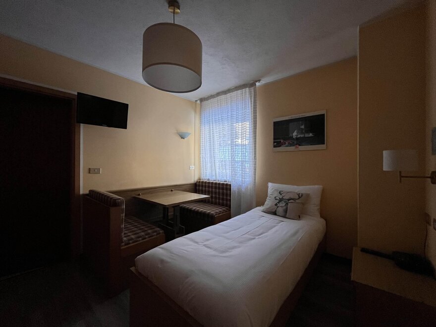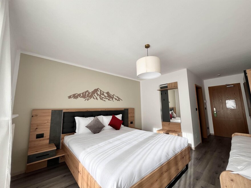 Die mit dem Aufzug erreichbaren Zimmer verfügen über Teppichböden und sind mit allen notwendigen Dienstleistungen ausgestattet, darunter: privates Badezimmer mit Duschkabine, Pflegeset, Haartrockner, TV, Safe und kostenloser WI-FI-Anschluss, möbliert mit Bettschrank aus alpiner Tanne.