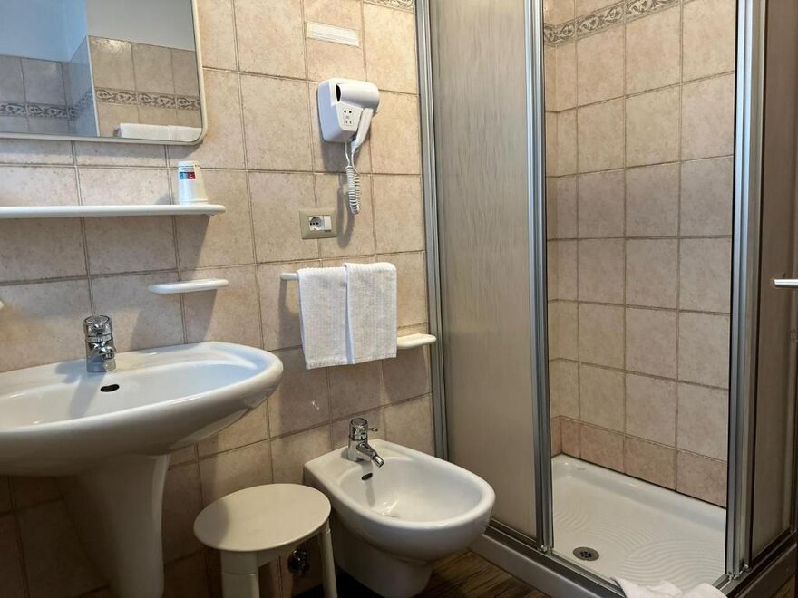 Dusche oder Badewanne, Pflegeproduktegeschenk, Fließendes Kalt- und Warmwasser, Bidet, WC, Dusche