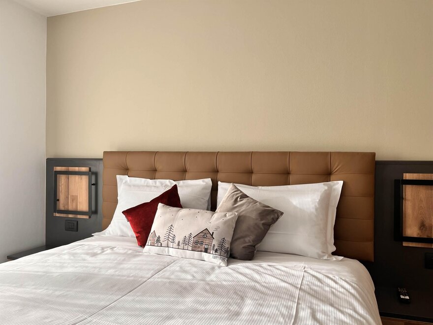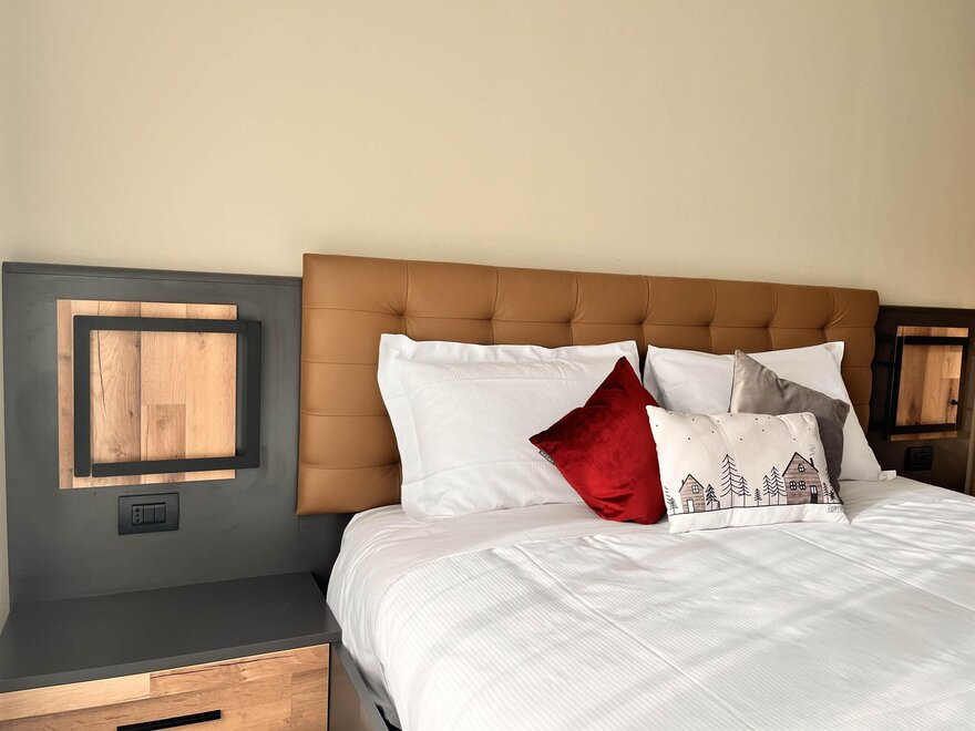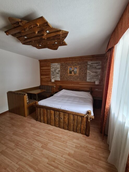 Die mit dem Aufzug erreichbaren Zimmer verfügen über Parkettböden und sind mit allen notwendigen Dienstleistungen ausgestattet, darunter: privates Badezimmer mit Duschkabine, Pflegeset, Haartrockner, TV, Safe und kostenloser WI-FI-Anschluss, im Bergstil eingerichtet .