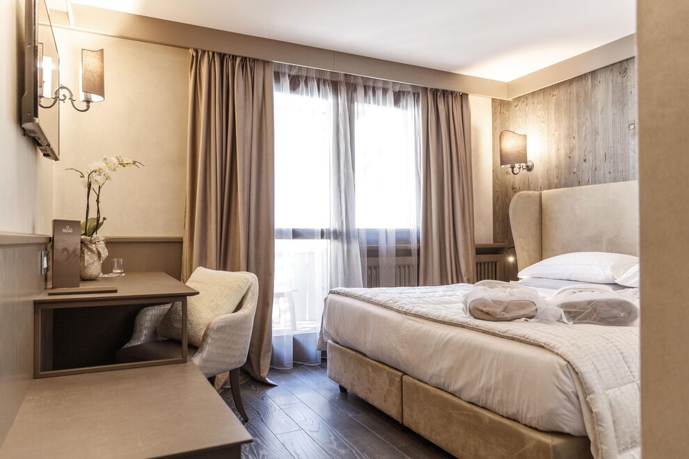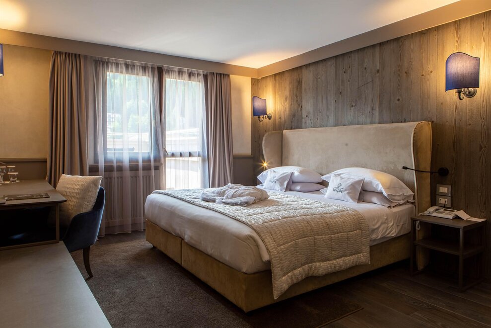 Sie haben einen Balkon, eine Loggia oder ein Fenster mit Blick auf den Teich oder den Monte Spinale, ausgestattet mit eigenem Bad mit Badewanne oder Dusche. Sie sind modern und zeichnen sich durch eine gute Ausstattung aus.