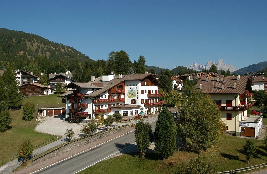 Das Hotel Stella Alpina befindet sich in Fleimstal, in dem Dorf von Bellamonte, (1372 m.) 5 Km von Predazzo entfernt, auf der Strasse zum Rollepaß.