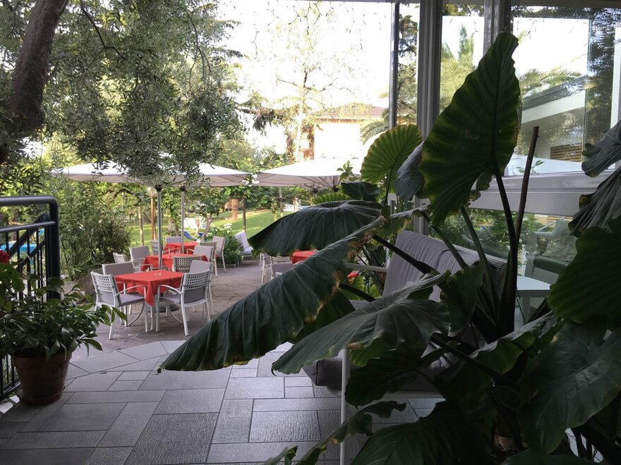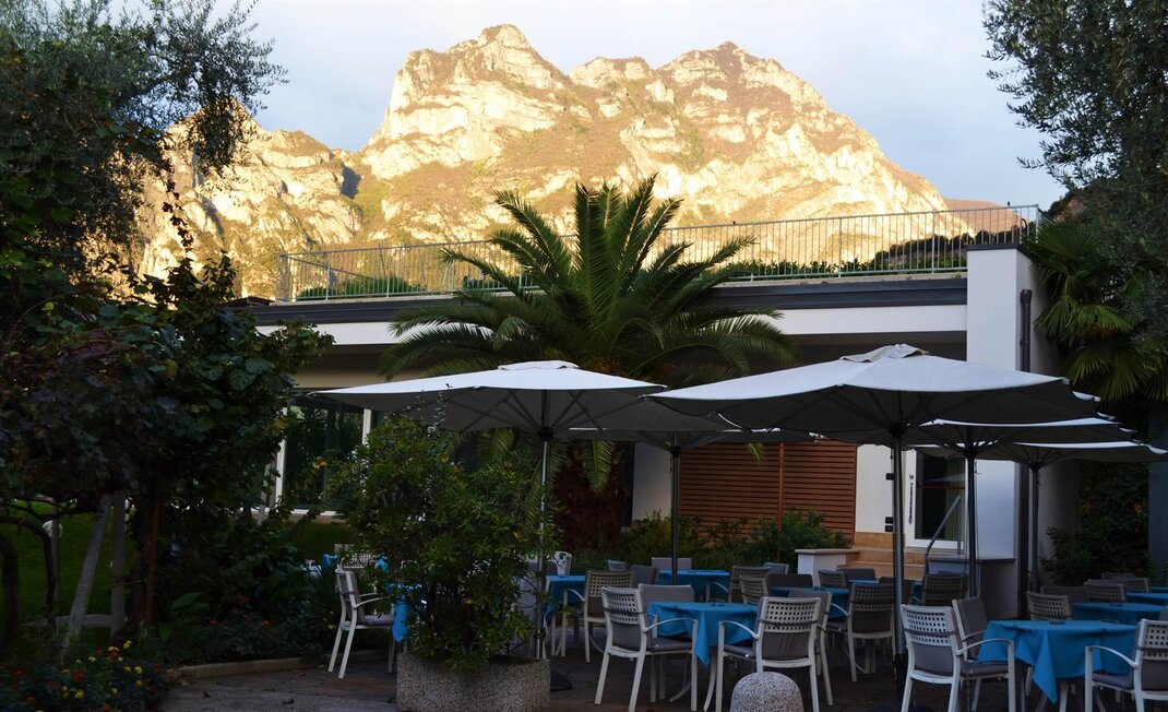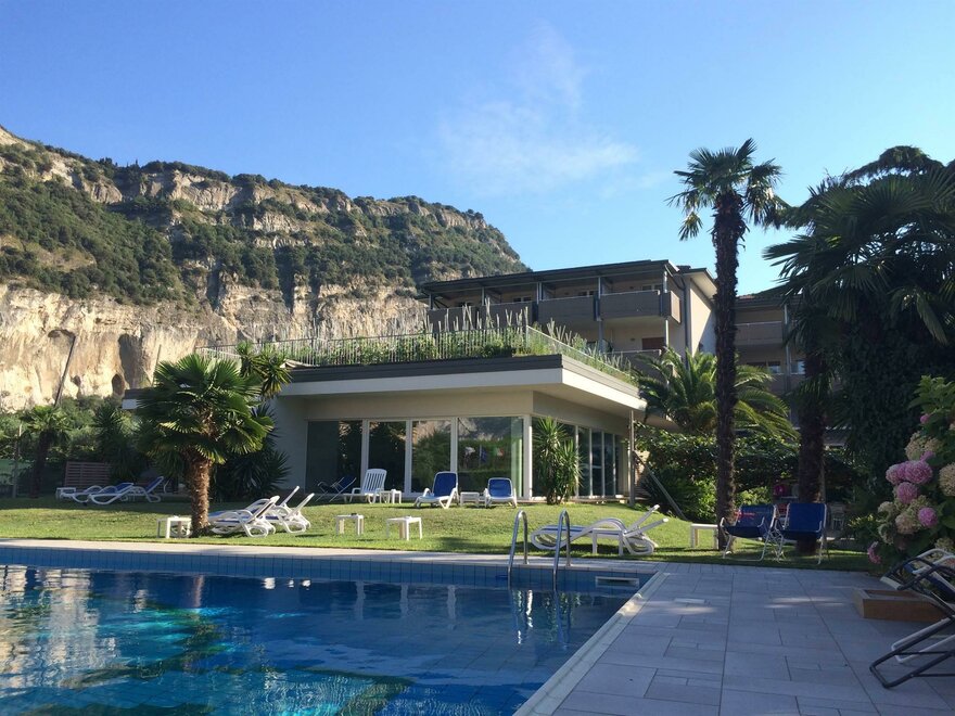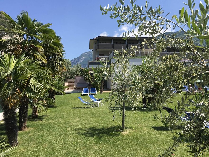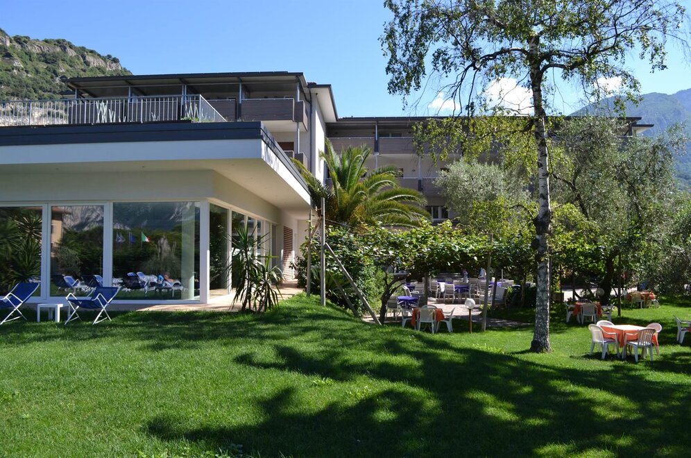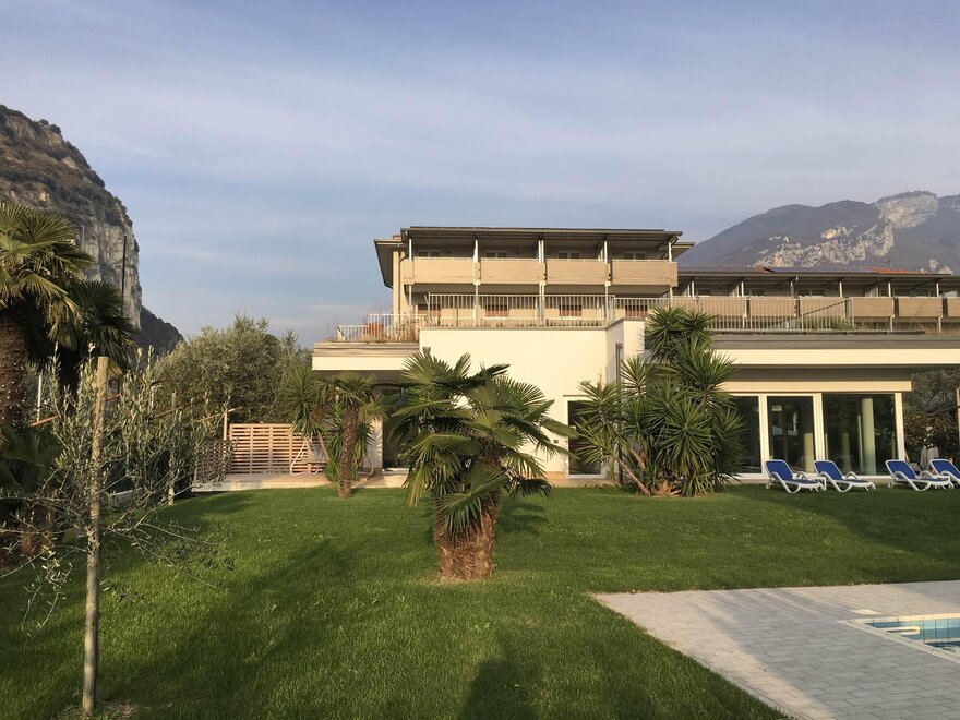 Ein modernes Hotel mit familiärer Leitung, am Ufer des Gardasees, inmitten eines wunderschönen Oliven und Palmen Parks mit Schwimmbad, nur 200 Meter vom See-Strand, Wind-Surfing Schule und Segel-Zentrum entfernt. Kulinarische Glanzlichter vom Augenaufschlag am Morgen mit reichhaltiges sportliches Frühstücksbuffet; am Mittag Zeit mit "Snack Service Menü" auch in Garten oder in Sonnen-Terrasse. Am Abend verwöhnt Sie unser mit trentinischen und italienischen Spezialitäten. Verschliessbarer Fahrradraum mit Videoueberwachtung. Sicheren Abstellraum für Sportgeräte. Service-ecke mit Werkzeug für Bike. Wi-fi free. Klimaanlage. Lift. Wellness Bereich mit Sauna, Fitness Raum und Hallenbad mit Whirlpool. City Bikes frei zur Verfügung.