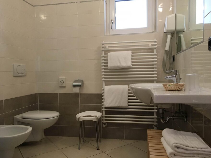 Dusche, WC, Dusche, Waschtisch, Fließendes Kalt- und Warmwasser, WC, Bidet