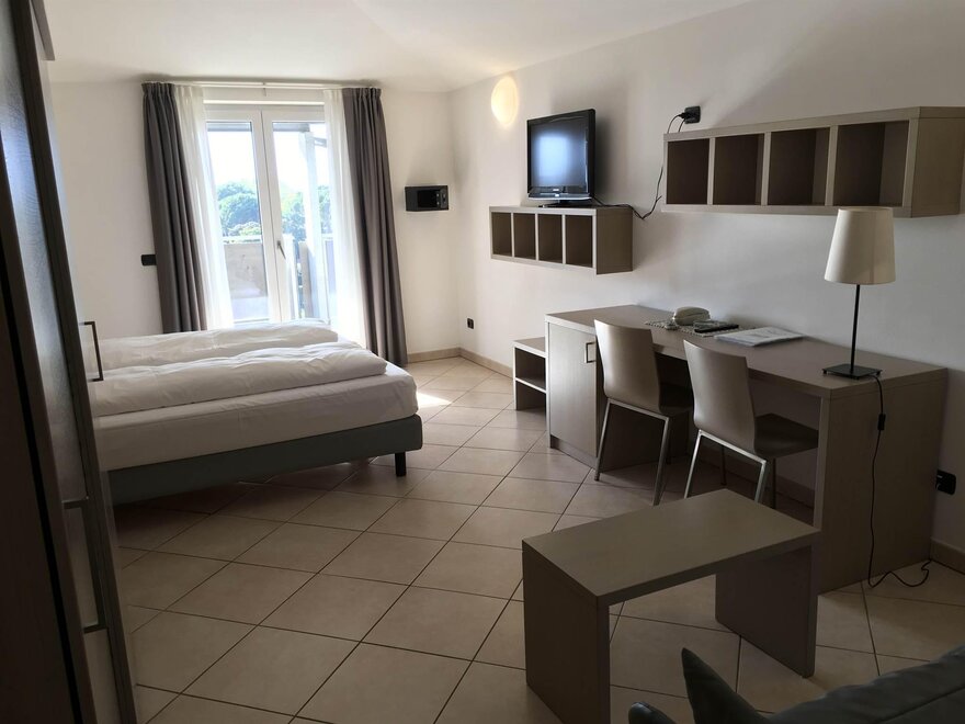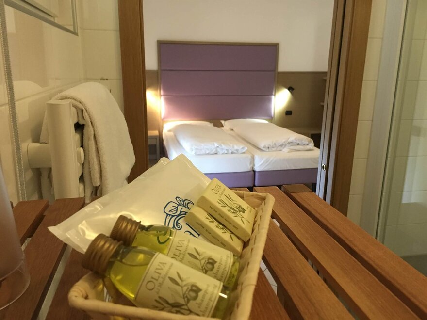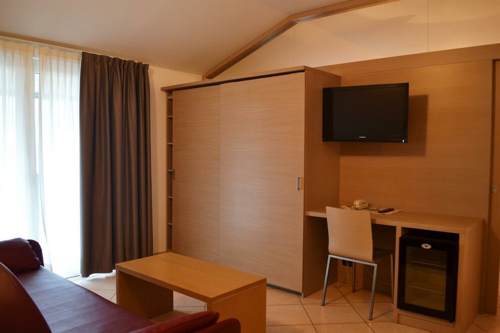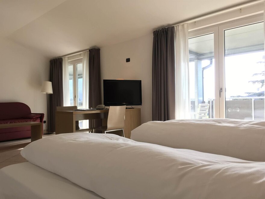 Junior Suite gemütlich und modern eingerichtet - nach Süden ausgerichtet - Zimmerfläche ca. 27/34 qm - Wohnbereich mit Sofa - mit Balkon im Loggiato - Klimaanlage - Telefon, Sat-TV 20 '' mit Teletext - Internetverbindung - digitale Safe - Badezimmerfläche ca. 5/6 qm - Duschkabine und Haartrockner