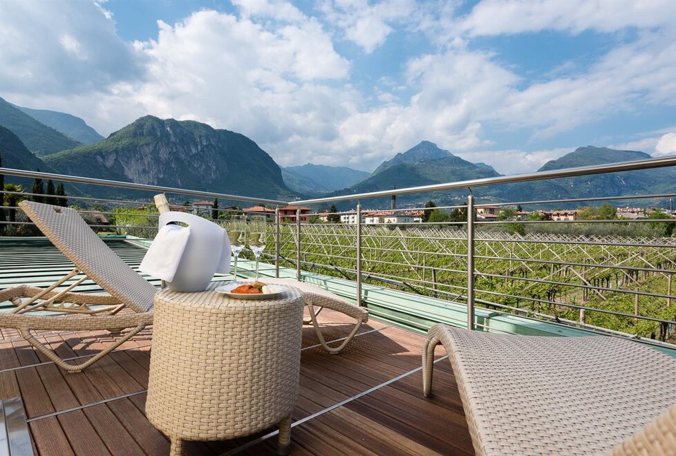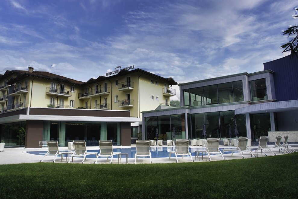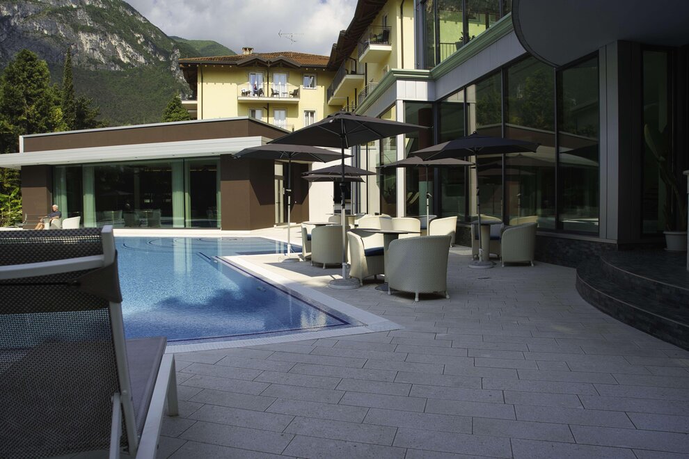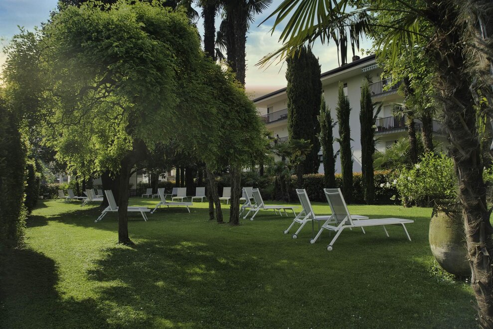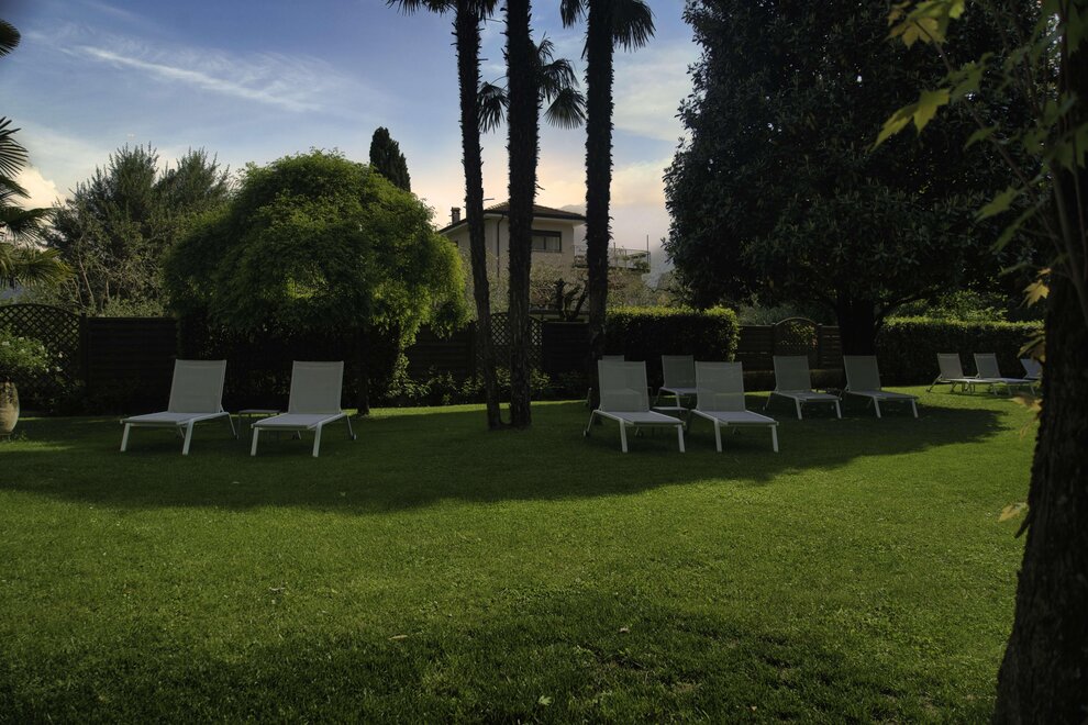 Ein grosser Park mit Salzwasser-Schwimmbad und ein moderner Wellness Bereich vervollständigen Ihr Refugium hier am Gardasee.
