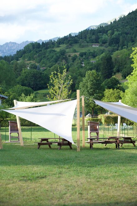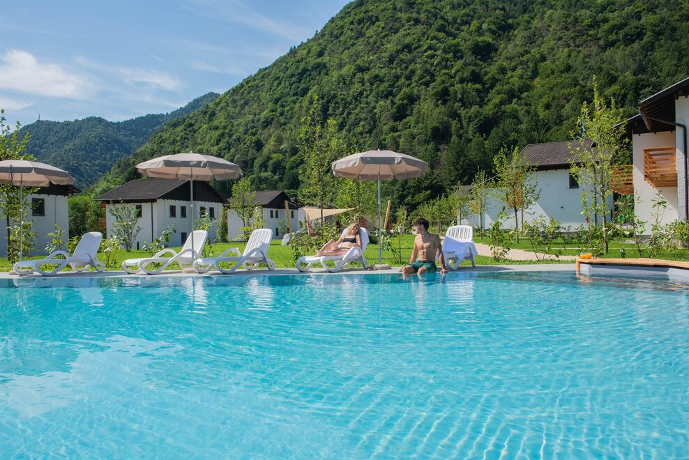 Das Villaggio Azzurro, das kürzlich renoviert und im Juli 2025 eröffnet wurde, befindet sich in einer sehr ruhigen, grünen Gegend, nur wenige Schritte von den Dörfern Pieve und Bezzecca entfernt.
