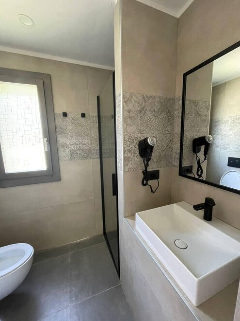 Bidet, Fließendes Kalt- und Warmwasser, Dusche, Dusche oder Badewanne, WC, Waschtisch