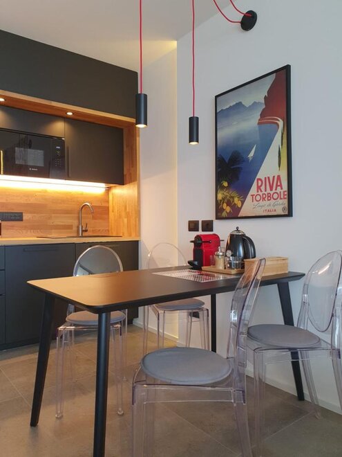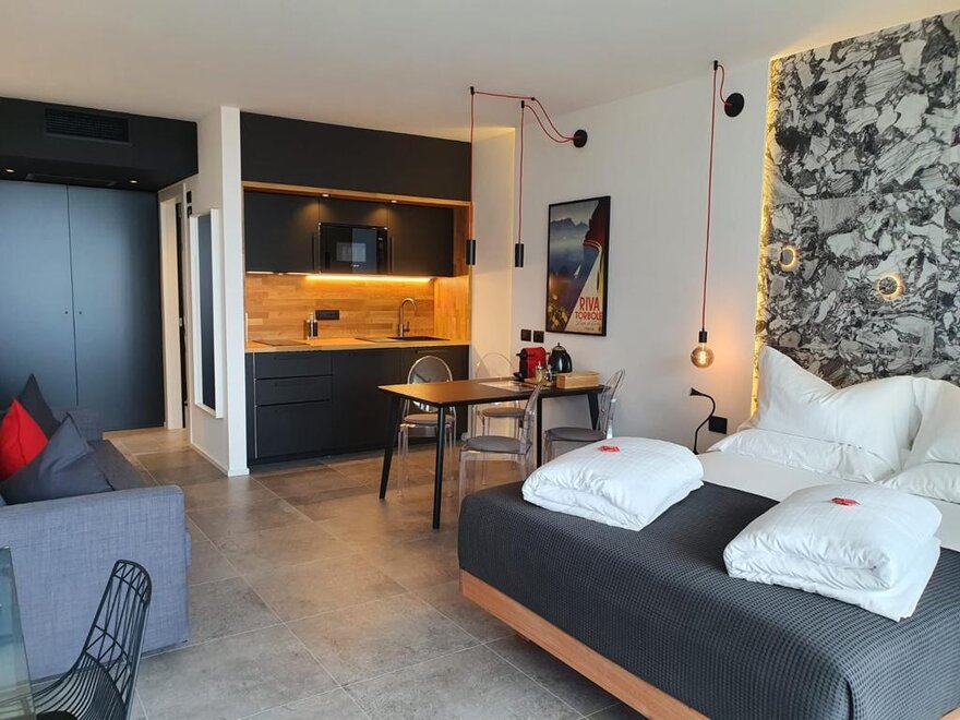 Satellitenfernsehen, Fliesen- oder Marmorboden, Deckbetten, Mikrowelle, Küchengeräte, Grundausstattung (Handtücher, Bettwäsche, Seife, Toilettenpapier), Wohnung ohne Teppichboden, Geschirr vorhanden, Self check in, Decken, Safe, Kühlschrank, Wasserkocher, Kochnische, Geschirr und Besteck, Geschirrspülbecken, Schreibtisch, Bettwäsche vorhanden, WiFi, Steckdose in Bettnähe, Schrank, Minibar, Bademantel, Moderne Möblierung, W-Lan kostenlos , Heizung, Klimaanlage, Kaffee-Maschine, Haarföhn, Balkon