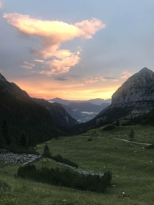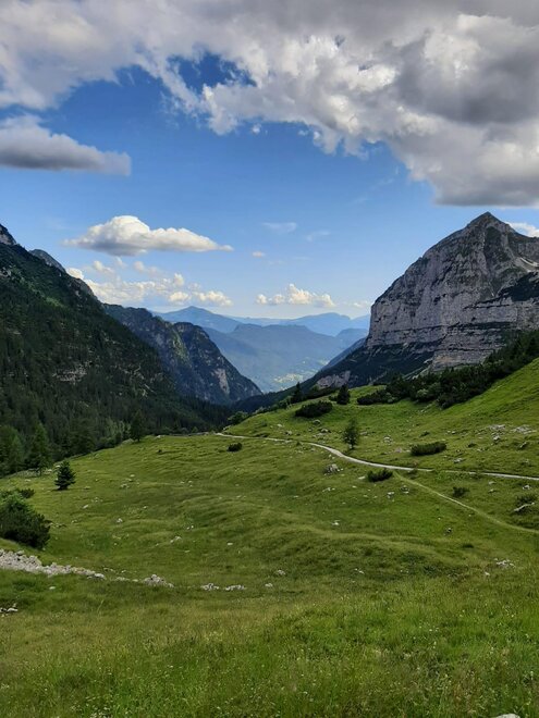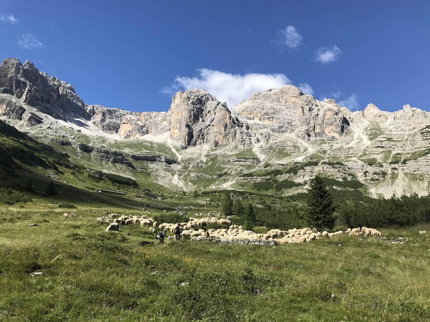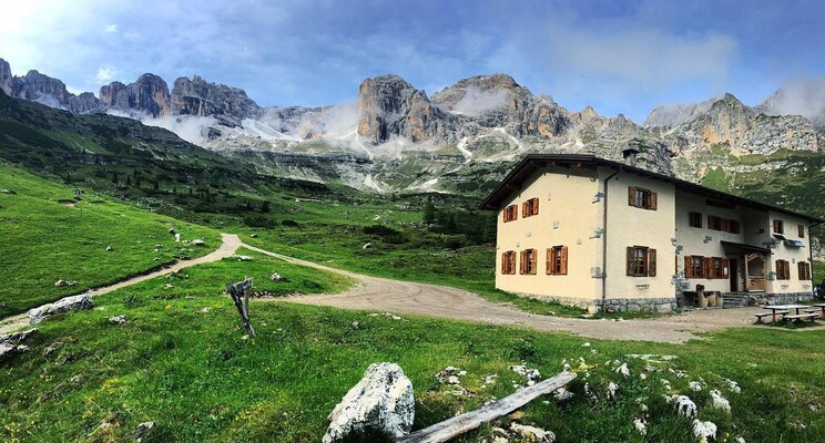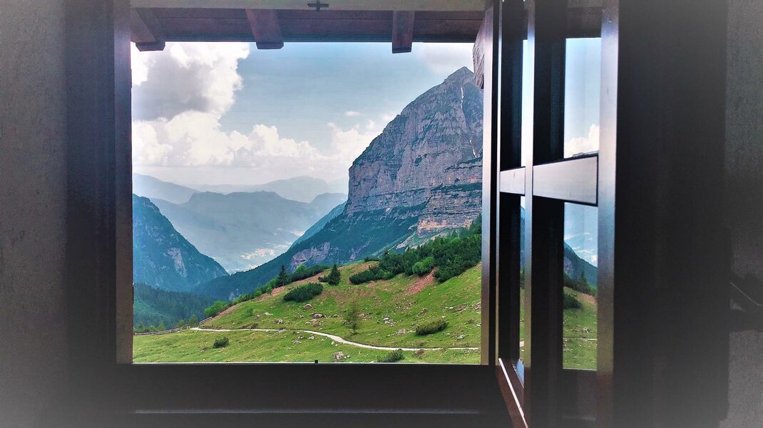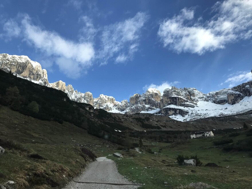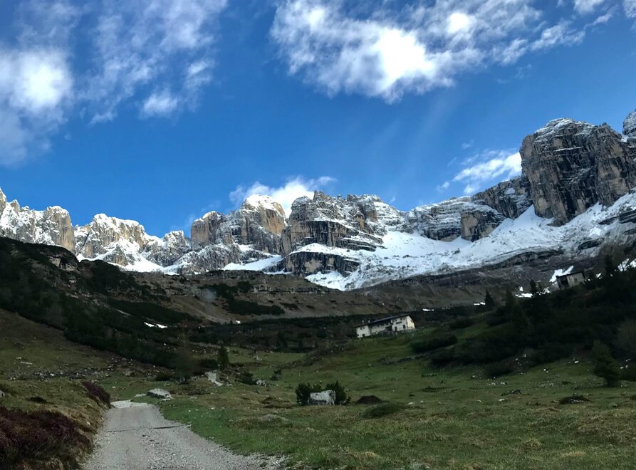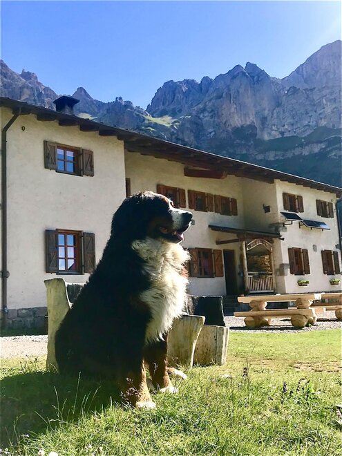 In the amphitheater of the wild Val D'Ambiez, the refuge “Al Cacciatore” is the first one you meet as soon as you leave the narrow but suggestive valley that rises from “San Lorenzo in Banale”. The refuge, at 1,820 meters above sea level, is surrounded by green pastures and by majestic peaks.