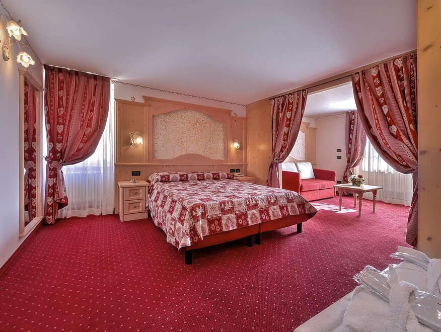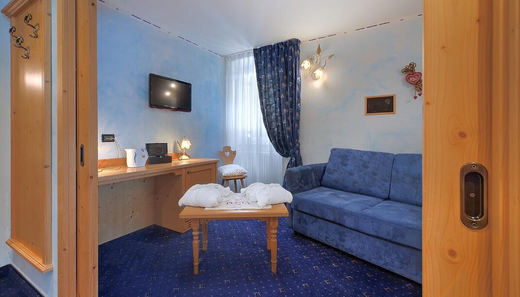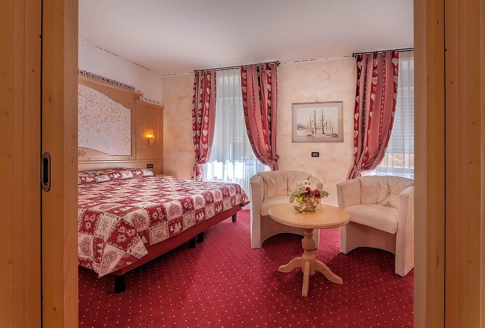 The Junior Suites are wedding rooms with a possible addition of a third bed. They are composed of a wedding room and a small living room.