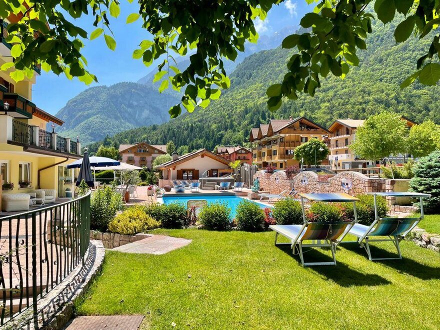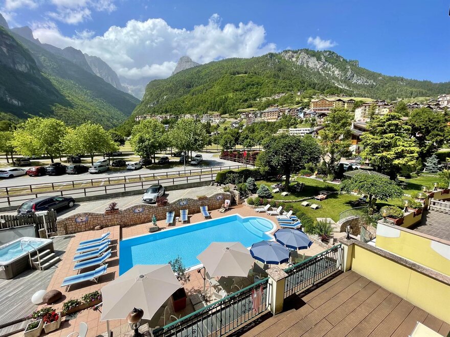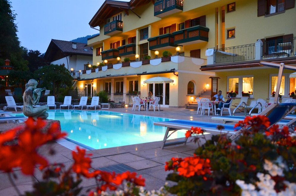 For those traveling by car: Drive along the Brenner motorway and exit at San Michele all'Adige. Drive through the village of Mezzolombardo until the crossroad for Altopiano della Paganella (on the left). After having passed Fai della Paganella and Andalo you reach Molveno. The hotel is situated in the residential part of the town, near the lake. For those traveling by train: The nearest stations are Trento (approx. 40km) and Mezzocorona (about 25km). From there you can take the public bus (you can find timetables by clicking the link http://www.ttesercizio.it/Extraurbano/ValDiSole_ValDiNon_Paganella.aspx) or book a taxi. For those traveling by plane: Verona Villafranca airport at 110 km. Venice airport is 140 km away. Milan airport is 250 km away. Taxi services can be booked directly at the hotel.