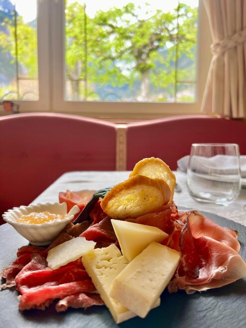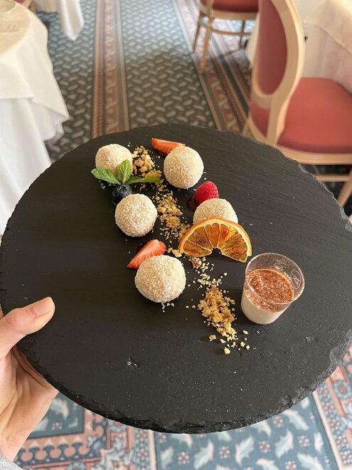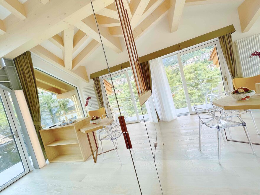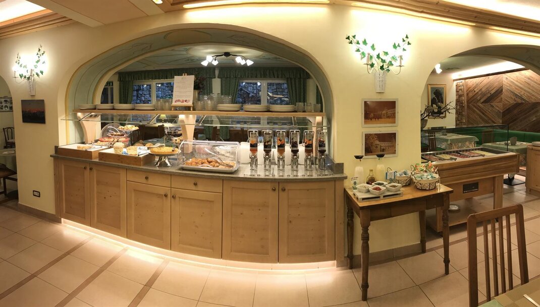 The panoramic dining room, overlooking the greenery of the park, becomes the perfect place to end your day on the slopes. Chef Renato, the owner of the establishment, offers a refined cuisine that combines regional specialties with international flavors, ideal for warming up and regaining energy.