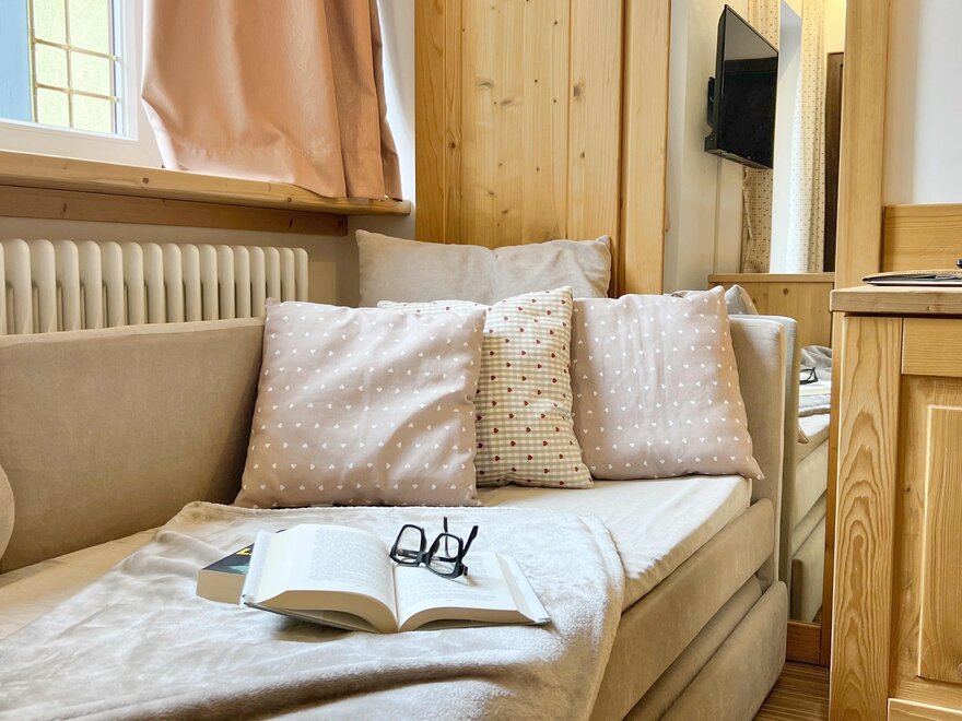 In winter, our Romantic Boutique Hotel 4★ Adults Friendly is the ideal choice for those who wish to experience the mountains away from the hustle and bustle of the ski resort, without sacrificing the convenience of the slopes. We are located in a quiet and secluded area, just 4 km from the ski area, easily accessible thanks to the free ski bus that stops right in front of the hotel.