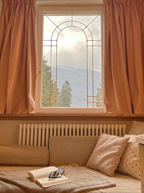 After a day on the snow, a warm and relaxing atmosphere awaits you here: the reading room with an open fireplace, the library, the bright veranda, and the cozy spaces invite you to slow down and enjoy the silence of winter, far from traffic and crowds.