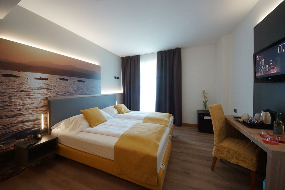 Double room with two single beds or one double bed with private bathroom with bath or shower, telephone, TV. Room on special offer in “roulette” formula: the room typology reserved depends on the final availability. Suitable for very short stays, room changes are possible. It also includes air conditioning, hairdryer, safe and bike rental.
