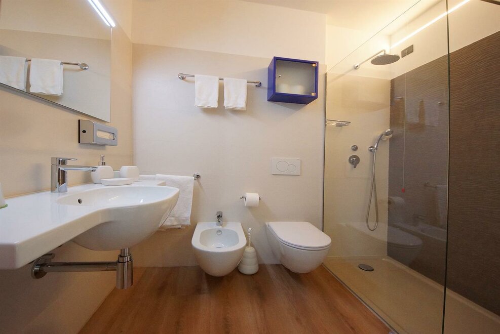 Triple room with double bed and single bed or three single beds with private bathroom with bath or shower, telephone, TV. Room on special offer in “roulette” formula: the room typology reserved depends on the final availability. Suitable for very short stays, room changes are possible. It also includes air conditioning, hairdryer, safe and bike rental.
