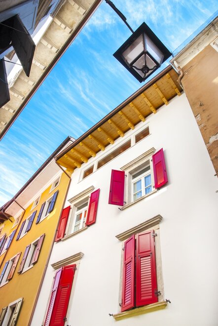APPARTAMENTI SEGANTINI - WELCOME - Located in Arco town-centre, SEGANTINI APARTMENTS all face Arco's main street, via Segantini. Arco is known worldwide for the numerous activities sport enthusiast can practice, such as free climbing, nordic walking and mountainbike, just to mention a few. The apartments are only 4km away from Lake Garda's beaches. It is the perfect place for boat sailing, wind surfing and kite surfing, but also for spending a day on the lively beaches lake Garda offers. Recently renovated, the Segantini Apartments all feature brand-new modern style furniture and three theme colors -- green, blue and red. They all include a terrace or balcony and have been equipped with anything our guest may need to enjoy a comfortable stay. Private parking places are also available, as well as a storeroom for bikes and sport equipment.