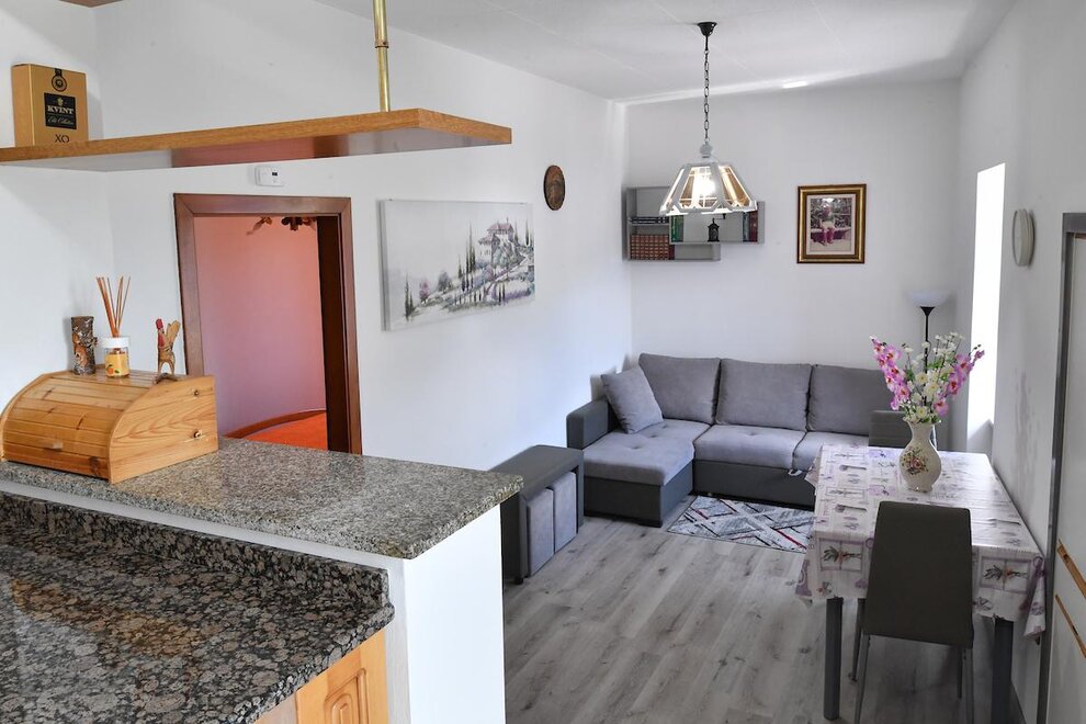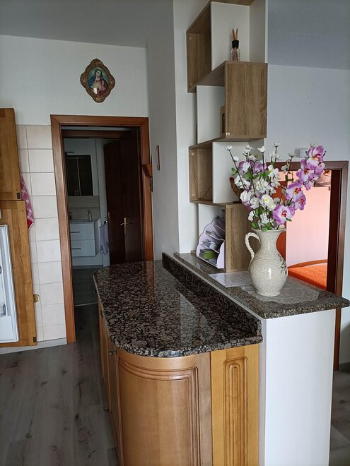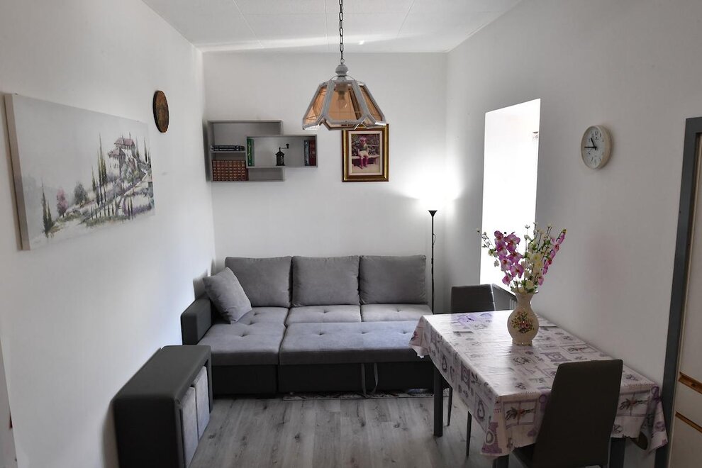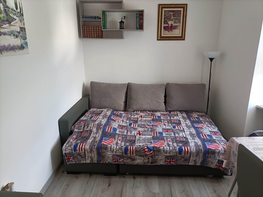 Flat Lorenzo, is a mini flat of about 45 square metres, consisting of a kitchen and a newly renovated bathroom with window on one level, while the living room and the double bedroom are on a level three steps lower, in the living room there is a double sofa bed in the corner, large private parking space available.