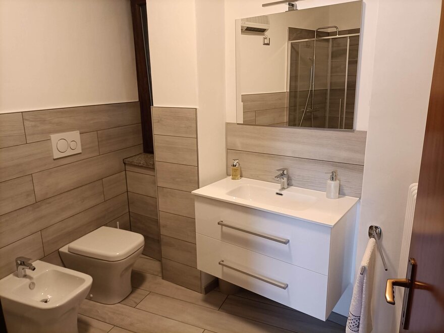 Access to the flat is via a staircase that leads to a large panoramic balcony overlooking Lake Caldonazzo. It is possible to use the adjoining garden and park your own bicycles and e-bikes in the garage.