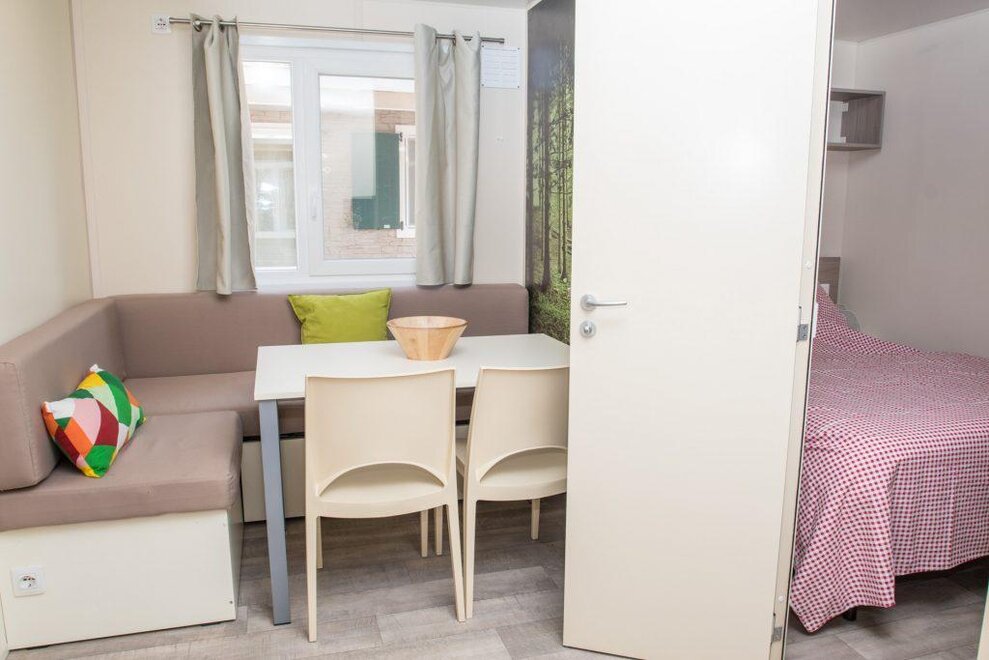 It is equipped with internal heating and a bathroom with shower, toilet, and bidet. The kitchenette is fully equipped with all utensils, kettle, spacious fridge, and freezer. Outside the Family Mobile Home, you will find a cozy wooden veranda, perfect for spending moments of relaxation and togetherness outdoors during the beautiful season.