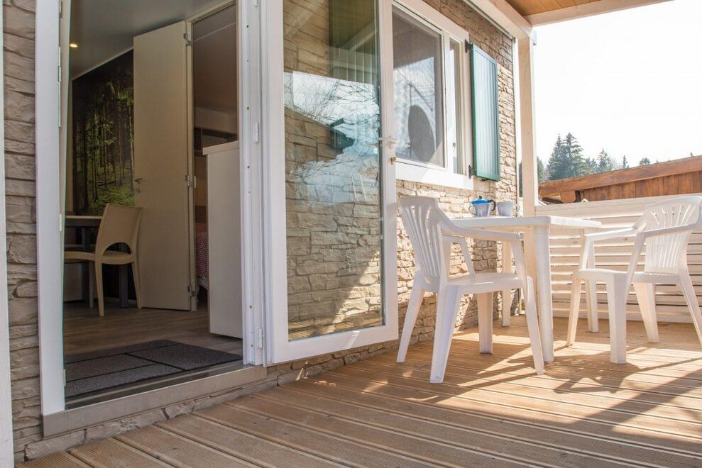 Each mobile house has a wooden external veranda with a table and chairs, from which to enjoy the fresh air of Alpe Cimbrain in total relaxation. WE ACCEPT SMALL PETS with an additional cleaning contribution of €10 per dog/stay, to be added to the final cleaning price.