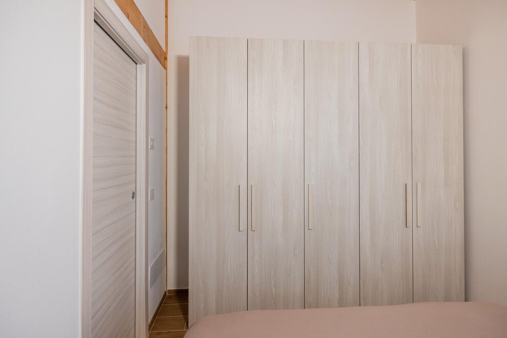 Two apartments, “Elisa” and “Chiara”, located on the ground floor with separate entrances, are situated within a new and modern entirely green structure. They comprise a spacious living room with a two-seater sofa bed and kitchen, visible wooden beams, a loft, a double bedroom, and a bathroom, and are equipped with every comfort. Full kitchen with all appliances and a washing machine in the bathroom. Both have ample well-fenced outdoor space (for potential pets) and a reserved parking space.