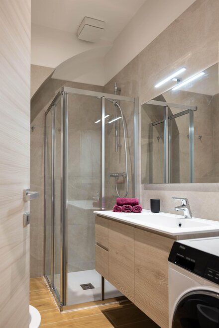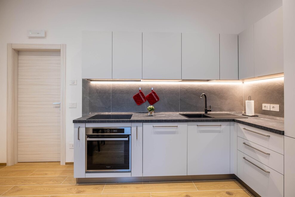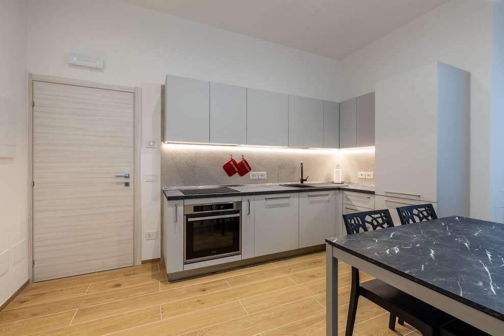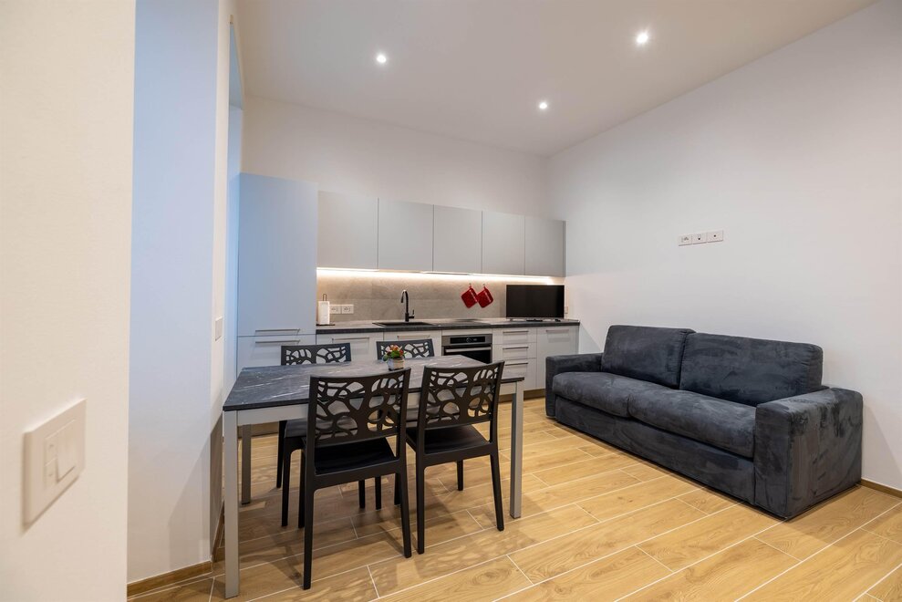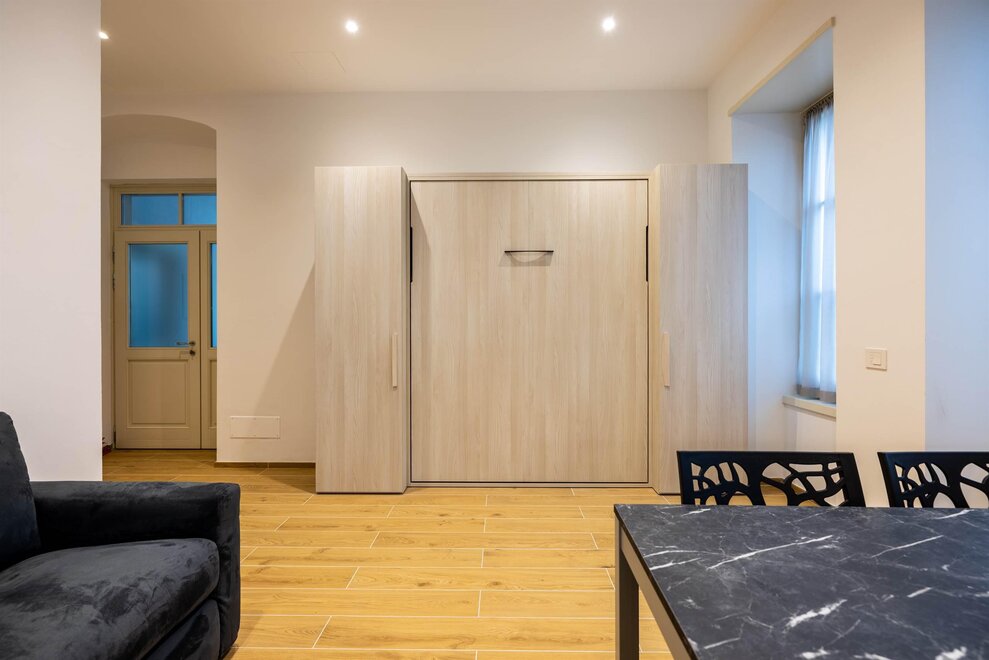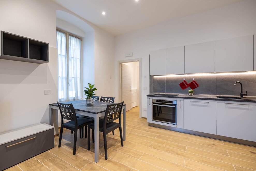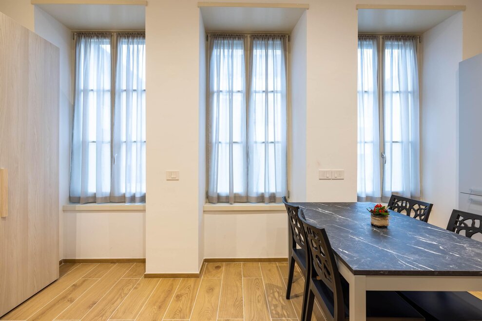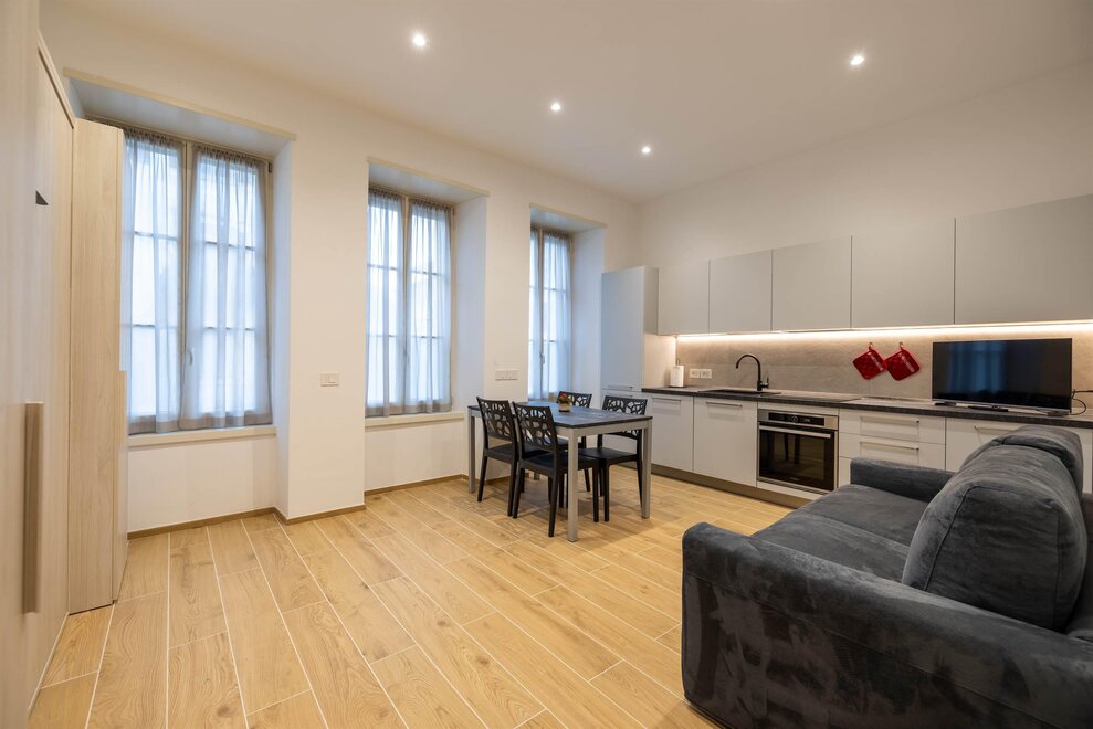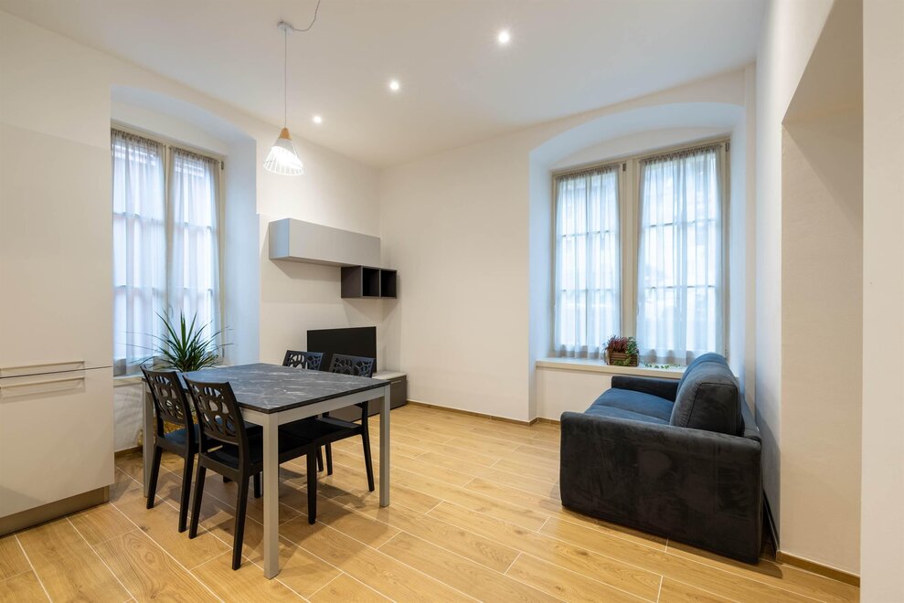 The other three apartments, “Moretta” (which depending on needs can offer additional accommodation with an independent entrance for two people in the dependance “Moiepiane”) and “Zeller”, are all located on the ground floor in a historical Liberty-style building from the 1900s. They have retained large windows and the spaciousness of the rooms after complete renovation. Comprised of a spacious living room with a two-seater sofa bed and kitchen, a double bedroom, and a bathroom. Full kitchen with washer-dryer in the bathroom. Reserved outdoor parking space. For the "Moretta" apartment, there is a large garden shared with the "Chiara" apartment.