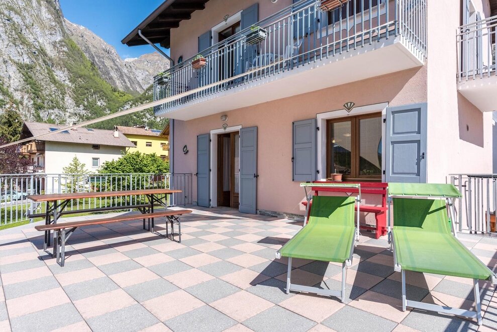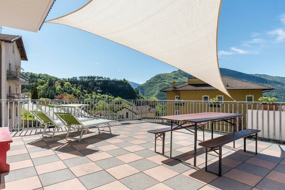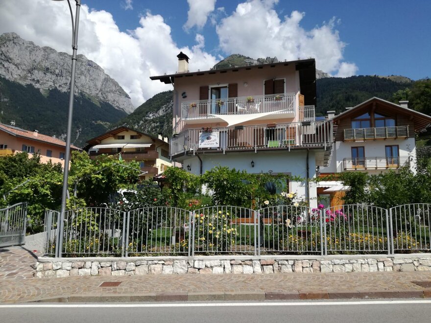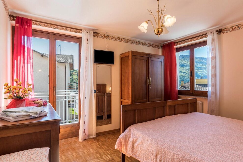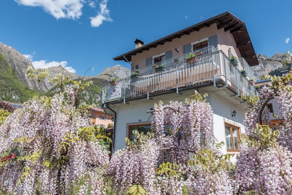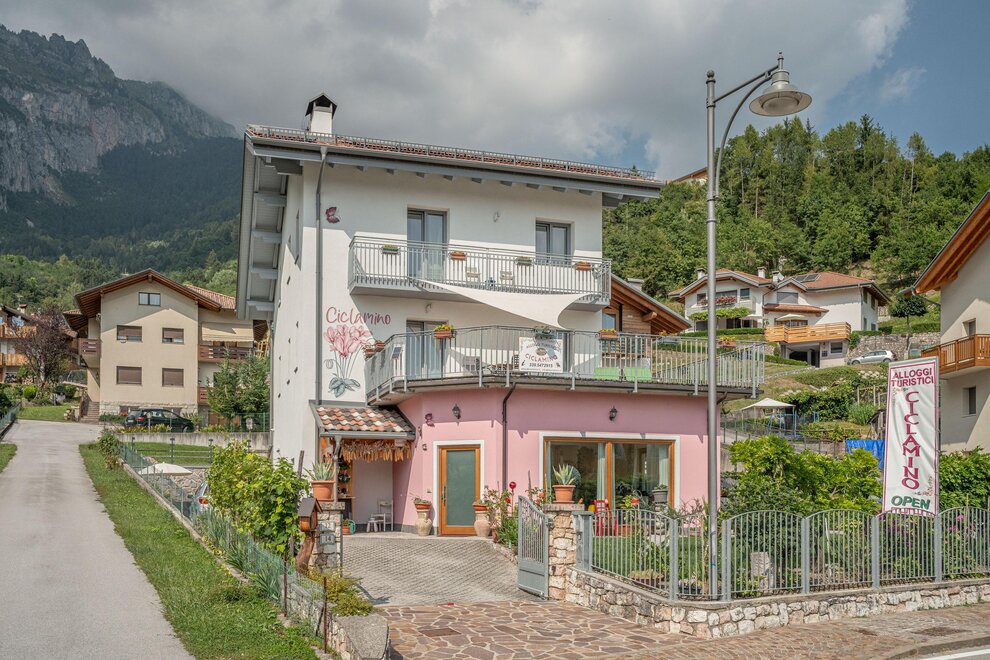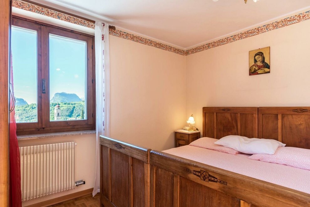 AT-Cyclamine puts in two storeys of the historic Appolon Family of native origin and acquaintance with the territory, customs, traditions and popular customs. On the first floor there will be an apartment with a double or twin bedroom, a large and bright kitchen, with a living room and a ceramic oak stove (typical in Trentino), private bathroom and window, 40 sqm terrace (solarium) with spectacular view On the Valle dei Giudicarie in the direction of Riva del Garda. In case of necessity it is possible to arrange a third bed (single or double) in the large space available, to be agreed at the time of booking. On the second floor there will be an apartment with double and twin bedrooms, with large internal spaces, each with a terrace equipped to appreciate, in full relaxation and comfort, the panoramic view of the mountains.Bed distribution