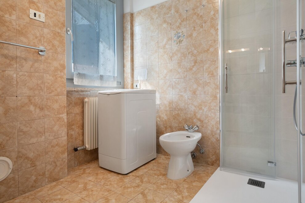 bidet, running hot/cold water, shower or bathtub, shared toilet, wash stand