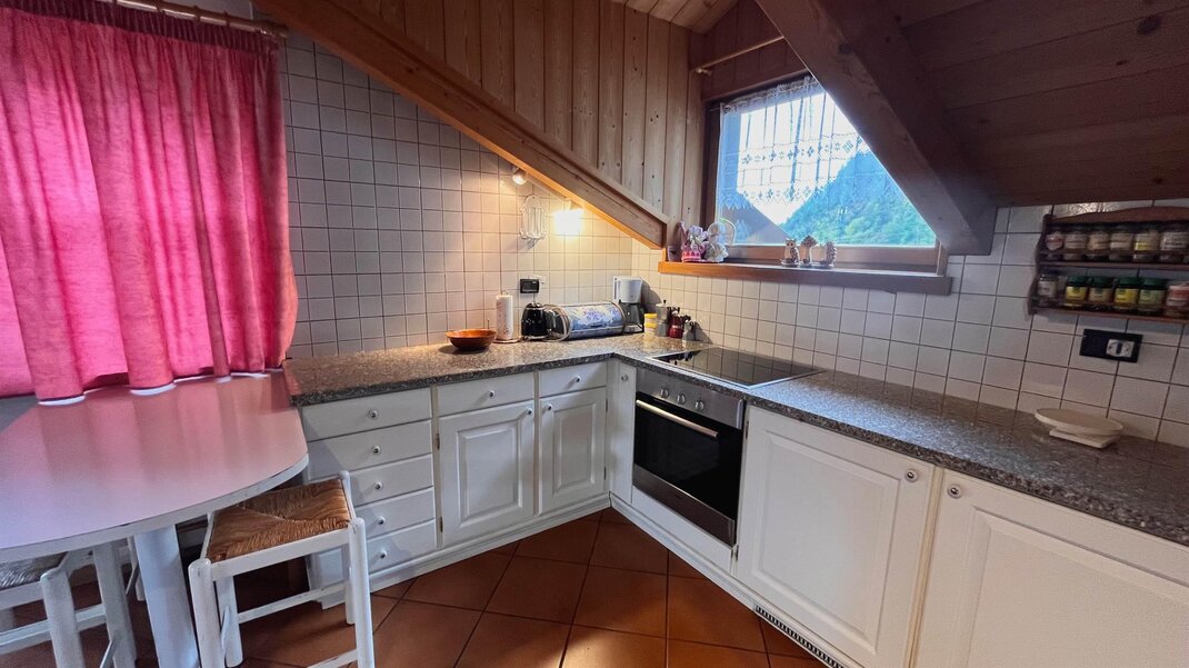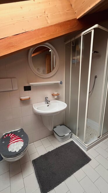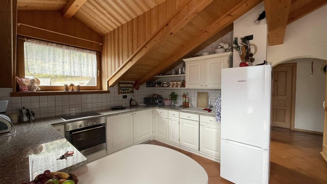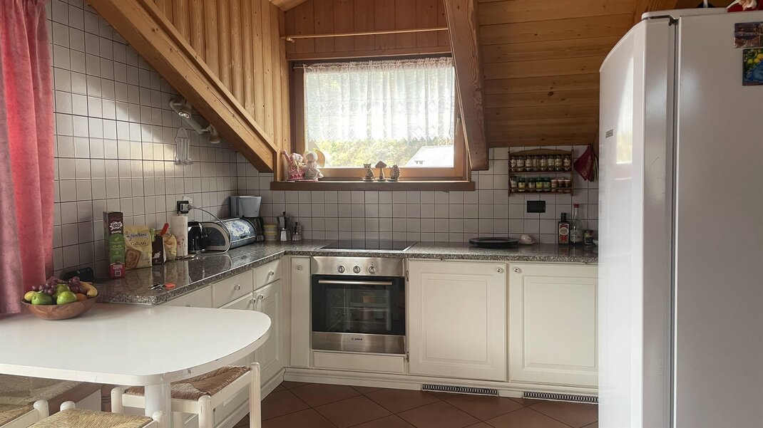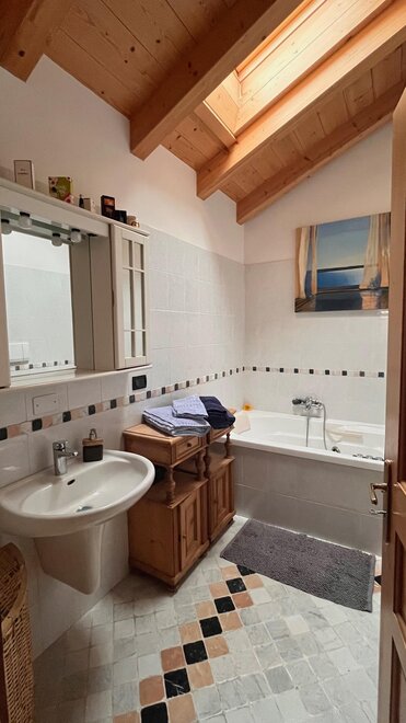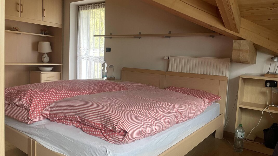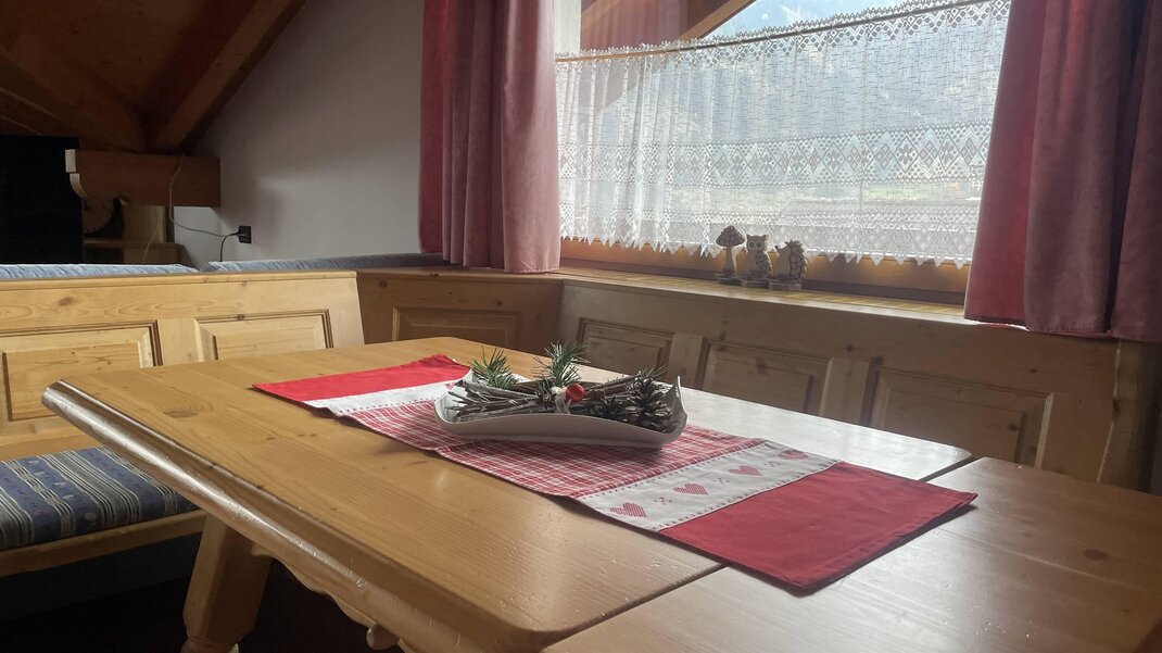 Located in a quiet area, about a 10–15 minute walk from the center of Ziano di Fiemme, this attic apartment with its warm wooden ceiling combines modern comforts and a mountain atmosphere. It is situated on the second floor of a small building and welcomes guests with a bright living-kitchen area, ideal for relaxing after a day spent outdoors.