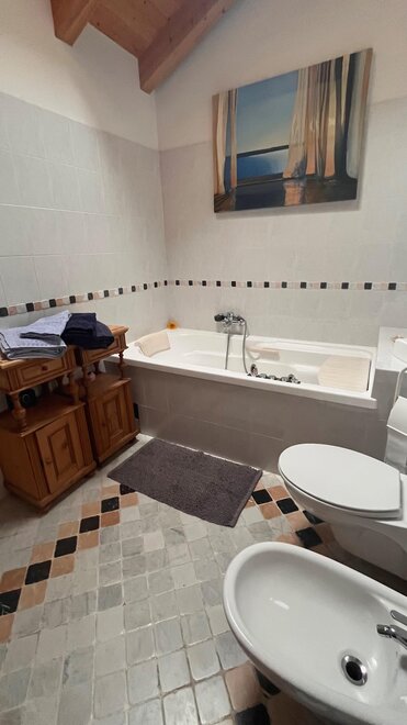 bathtub, no. of bathrooms: 2, shower, bidet, shower, toilet, toilet, running hot/cold water, wash stand