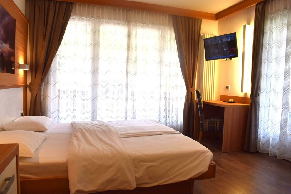Surrounded by the Dolomites, the Hotel Crepes de Sela is synonymous of a holiday full of emotions. Familiar management, warm atmosphere, comfort, restaurant with optimal Italian and international cuisine, breakfast buffet. Only few meters from the cable way Col Rodella, the hotel disposes of comfortable rooms with toilet and bathroom, balcony and telephone, living room, television, safe, sun terrace, sauna, solarium, whirpool, steam bath and parking area. Campitello is a paradise in every season, during the summer it is the ideal starting point for fantastic excursions towards the Sassolungo, Catinaccio, the Sella group and the Marmolada glacier, during the winter it is full of surprises for the fans of the winter sports both for the alpine and for the cross country skiers and for those who like winter walks. Moreover Campitello gives you direct entrance to the famous Sellaronda tour.