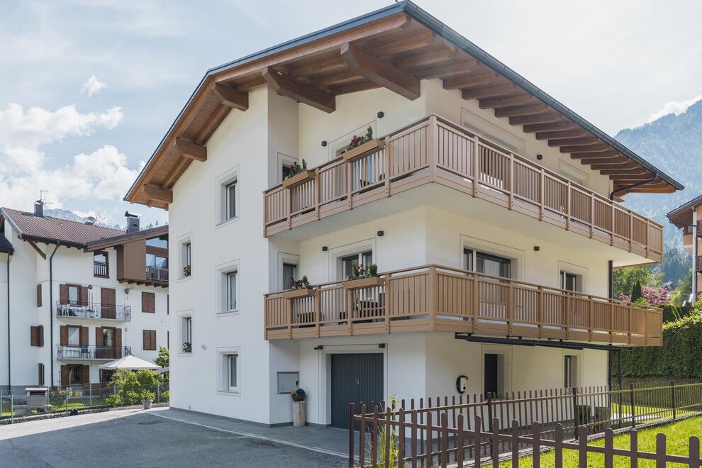 Just a few minutes' walk from the center of Fiera di Primiero and a 15-minute drive from San Martino di Castrozza, a bright and well-equipped apartment featuring a dishwasher, oven, refrigerator, freezer, microwave, hairdryer, and LCD TV, with 3 comfortable bedrooms, living room, kitchen, bathroom, and spacious terraces on three sides of the building.