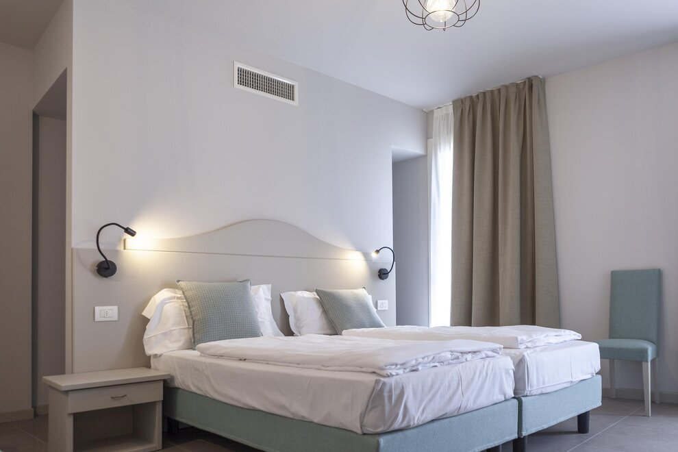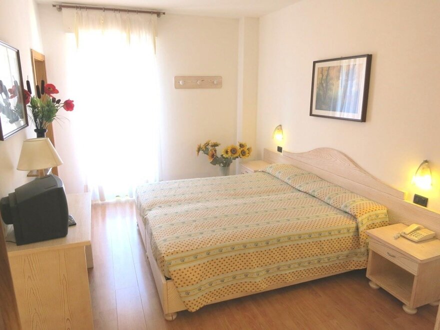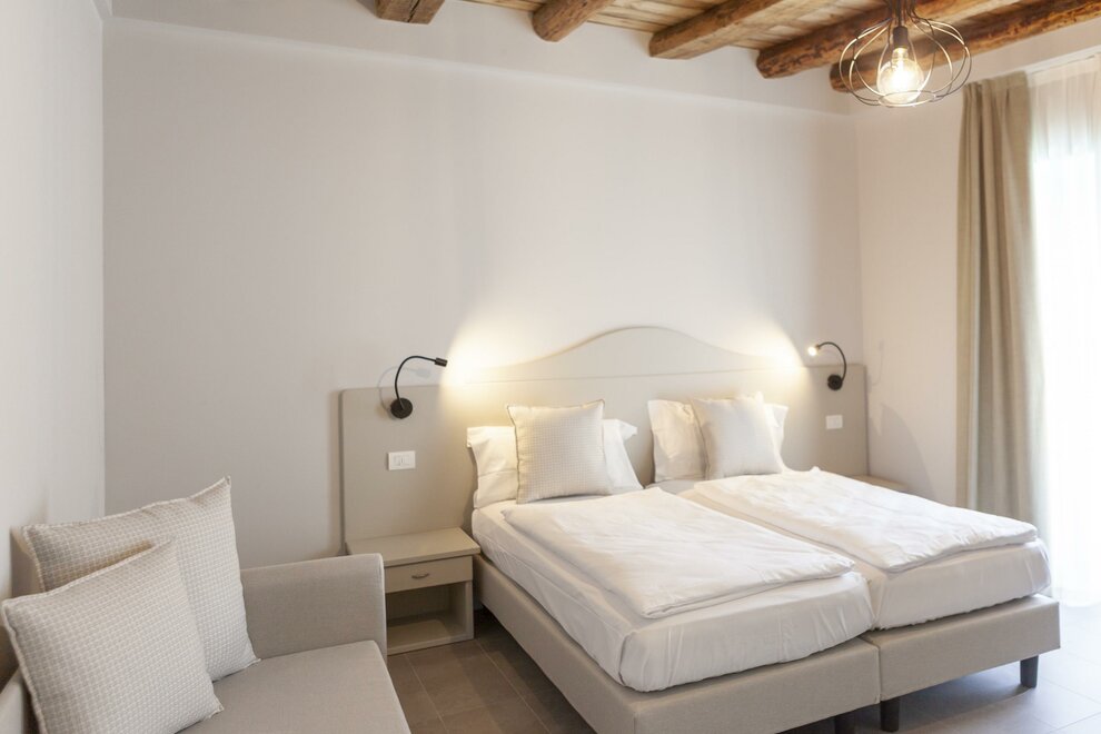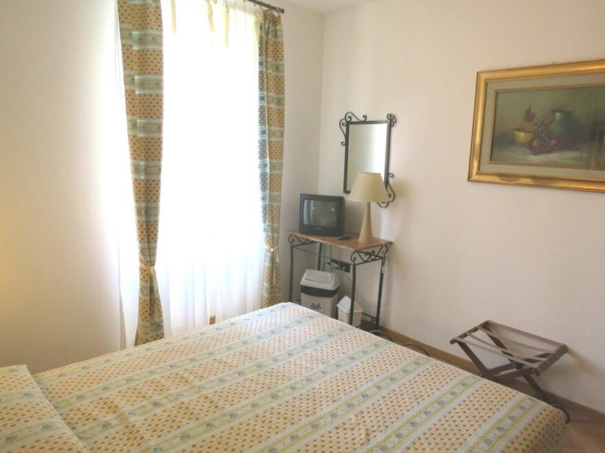 Rooms of smaller size (8-10 sqm) with a "French" double bed (1.60 m wide) and a small private bathroom. Furnished in rustic style, they offer Wi-Fi, satellite TV, telephone, safe, and hairdryer.