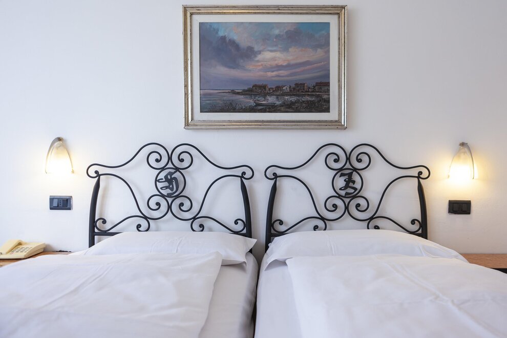 More comfortable and spacious rooms (10-14 sqm) with a "queen-size" bed (1.80 m width) and private bathroom. They are furnished with "bleached" spruce wood or wrought iron and are equipped with wi-fi, telephone, satellite TV, safe, and hairdryer.