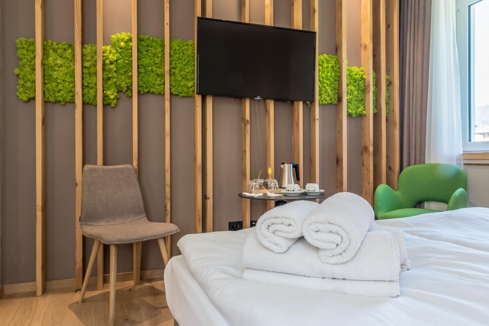 WiFi, barrier free according to DIN, satellite TV, non-smoking room/apt., kettle, mini-bar, wooden or parquet floor, no carpet, hairdryer, feather beds, closet, socket close to bed