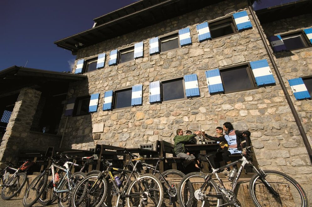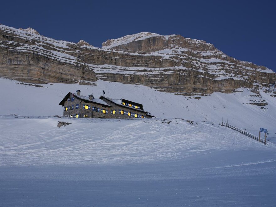 Built in the forties, just after the war, and named after a great mountaineer and aviator, the Refuge was intended to be a base from which to venture out onto the wild slopes of the northern Brenta and to embark on the Via delle Bocchette from the north. But now - with the arrival of the ski lifts - it is one of the main focal points for the thousands of skiers who flock to Campiglio’s pistes in winter. This is the only SAT refuge open both summer and winter, and is very popular with tourists who come here for a taste of traditional Alpine culture. Guests can enjoy the sweeping views from the terrace - ask warden Roberto Manni to help you identify the mountains: from the Brenta to Cevedale with the sun that sets behind the Adamello-Presanella group. Open All year round Before leaving for your hike, always contact the manager to verify the actual opening of the mountain hut Walks From the Refuge, it’s easy to get to the “Orti della Regina” (the Queen’s gardens), two natural basins on the slopes of Pietra Grande featuring a wide variety of floral species (1 hour, difficulty EE). The walk to Rifugio F. F. Tuckett & Q. Sella takes 1 ½ hours with no particularly difficult stretches of path, or you can get there on the Via delle Bocchette (4 ½ hours, difficulty EEA), which continues, maintaining altitude, across the entire Brenta Dolomites. The refuge is also a starting point for the northern route across the Brenta on the Costanzi via ferrata to Rifugio Peller, which take two days with an overnight stop in a bivouac hut, a very difficult route for experienced mountaineers only.