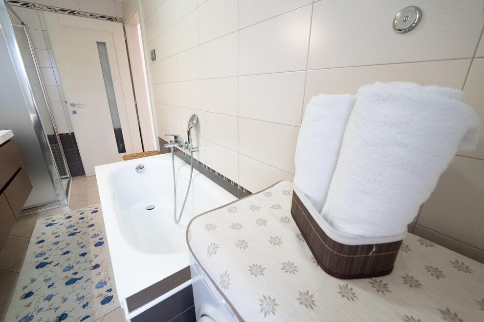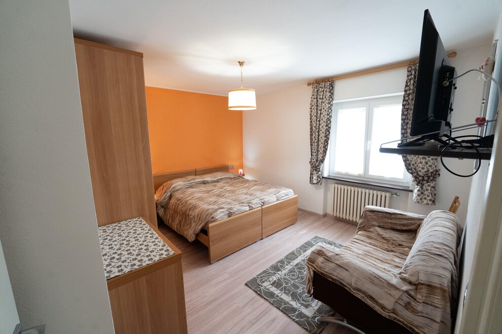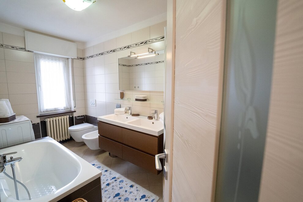 Apartment in Folgaria in a quiet and sunny area. 65 m2 apartment on the mezzanine floor, with terrace equipped with tables, garden available with deckchairs. Kitchen equipped with oven, dishwasher, microwave and coffee machine. A double bedroom and a double bedroom with the addition of a bunk bed. Bathroom with window and bathtub and shower and washing machine. The house is quiet and has a garden equipped with relaxing deckchairs for guests. Vacuum cleaner available in the apartment. A parking space and ski and bike storage are available.