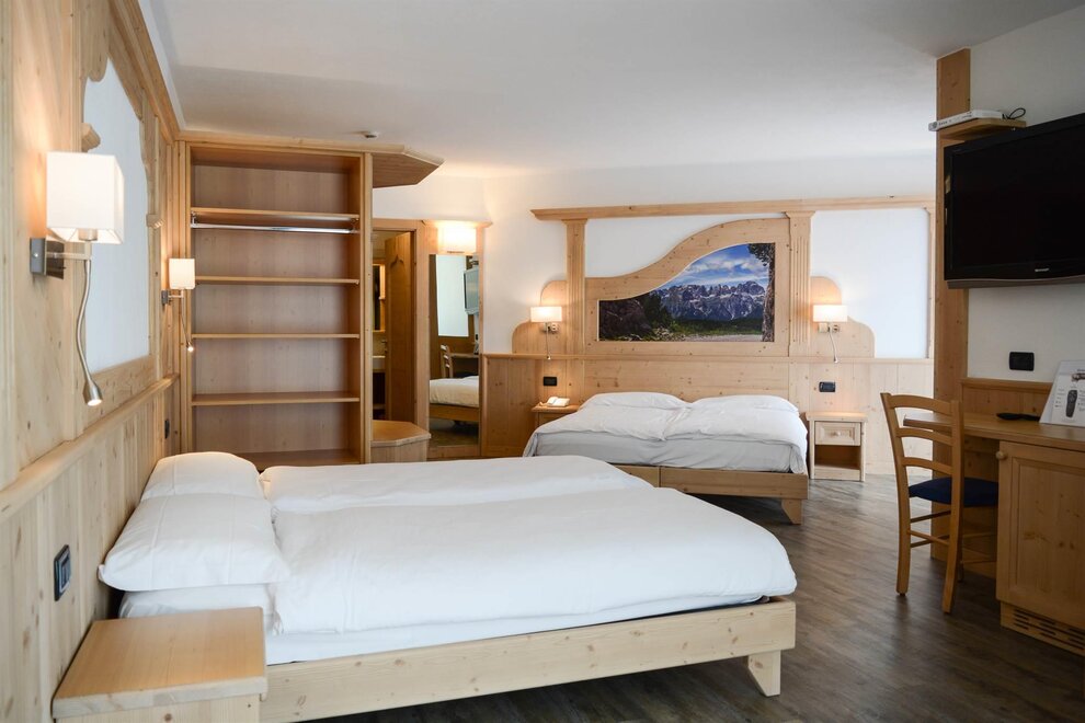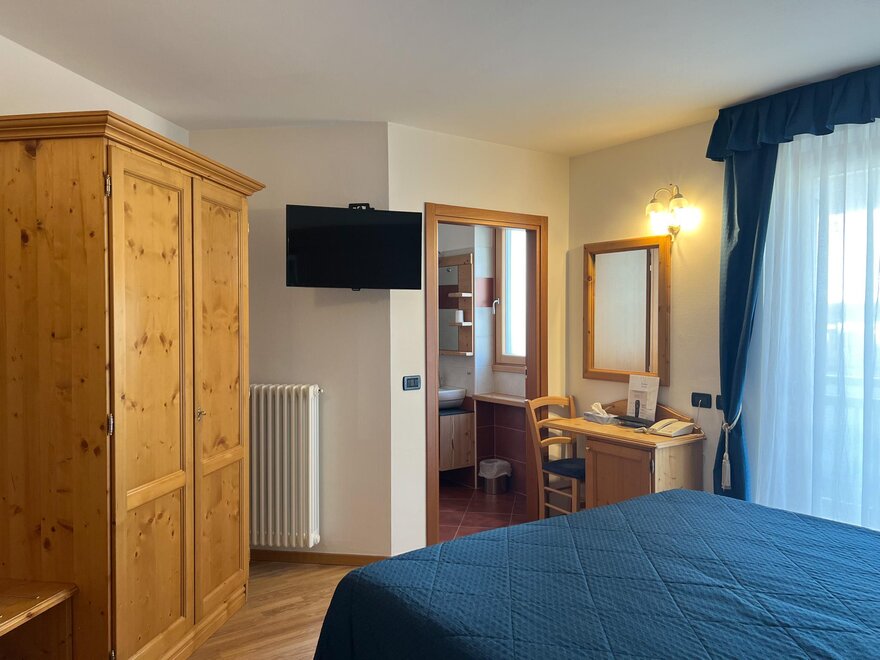 Our Standard rooms can be double, triple or quadruple. The Campanil Bass have new wooden furnishings and minibars. The Family Rooms (Dosson and Meriz) are communicating rooms, to guarantee privacy and space and are of two different types. You can find all the typologies with floor plans and photos on our website.