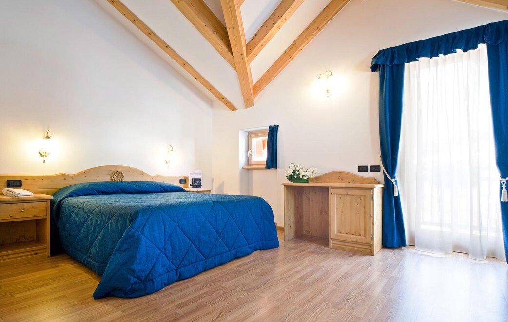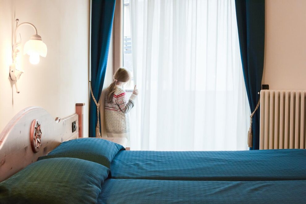 Our rooms are comfortable, spacious, furnished in mountain style with wooden furniture and floors. They all have a balcony and are equipped with Sky television, telephone, safe, private bathroom, hairdryer. On request, comfortable cots for newborns and side rails for older children.