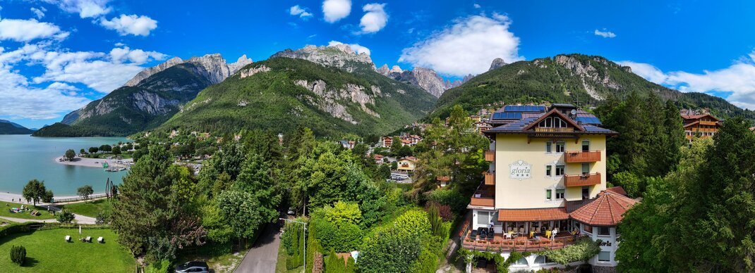 Lake & Nature Hotel Gloria, an island of green on the shores of Lake Molveno, the Riviera and heart of the Dolomites of Brenta.