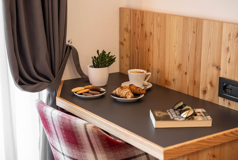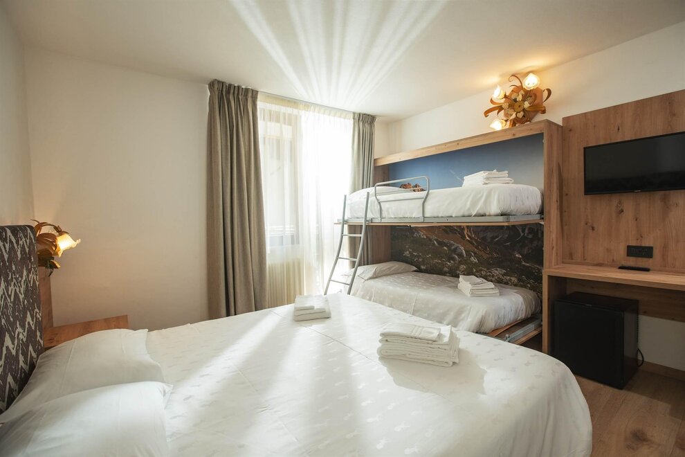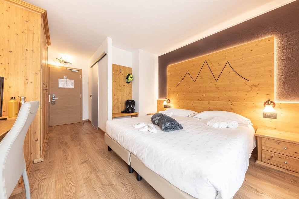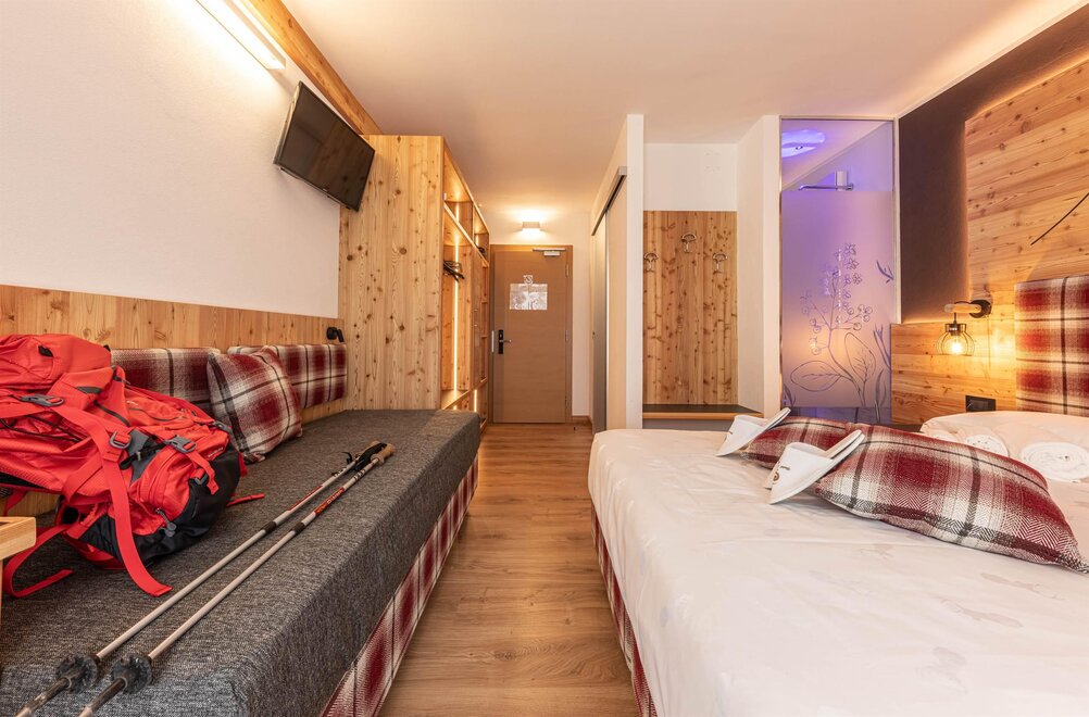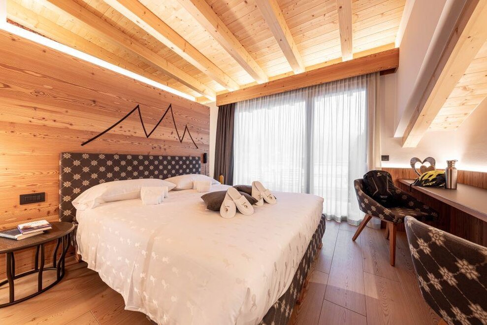 Equipped with excellent amenities and, above all, an atmosphere of enveloping tranquility, with parquet flooring, balcony with mountain views, flat-screen LCD TV, Wi-Fi connection, telephone, safe, minibar, private bathroom with jacuzzi shower, hairdryer, and courtesy setRoom/apartment features