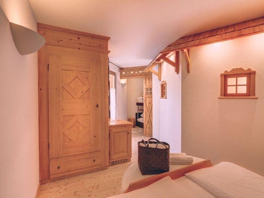For those seeking a solution of peace and relaxation. Our communicating Family Rooms Rosengarten, built with bio-construction techniques, are furnished in a refined alpine style, where the warmth of natural wood meets the elegance of design details. The rooms offer the comfort of double en-suite bathrooms equipped with walk-in showers. Ideal for families or groups of friends who wish to share their vacation while maintaining their privacy and maximum comfort.