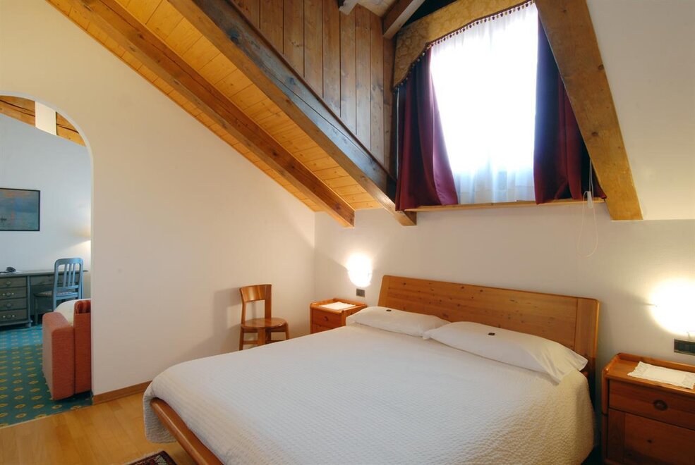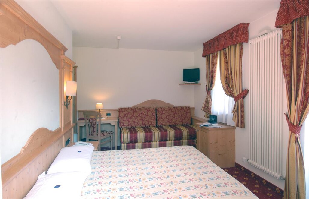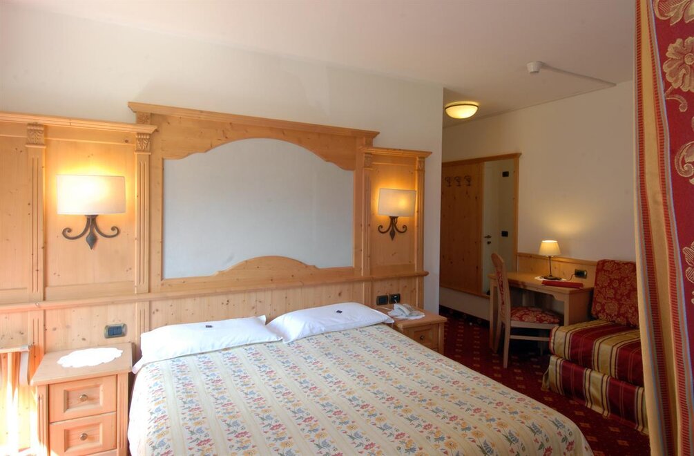 The hotel has thirty double rooms and family rooms, all with shower and bathroom, Sky TV, mini fridge and telephone, and most have panoramic terraces offering colourful views of the Pale di San Martino. … Guests can relax by enjoying a sauna or Turkish bath, working out in the gym or playing tennis. Conference room ,free Wi-Fi and heated garage , and parking.